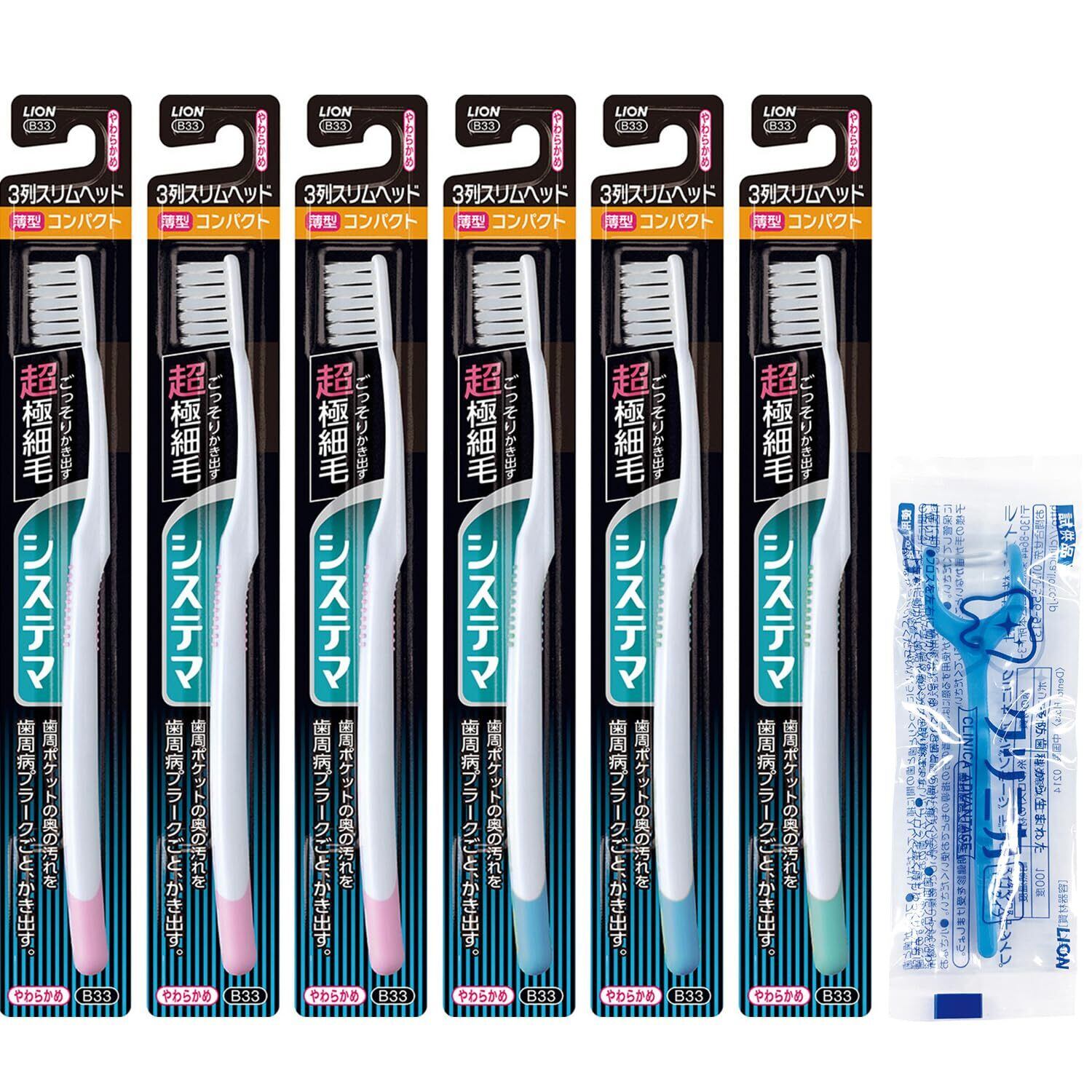 システマ ハブラシ コンパクト 3列スリム やわらかめ 歯ブラシ 歯周病 セット 6本(※色は選べません) +フロス付き