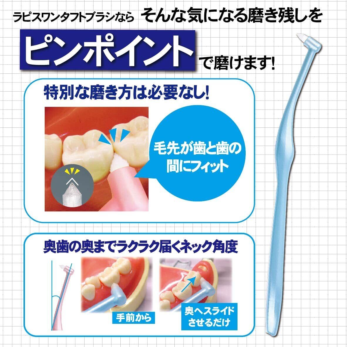 L APIS:ラピス ワンタフトブラシ 歯科専用 日本製 部分磨き 矯正器具回り 歯間 歯周ポケット ふつう ビビット5本 キャップ1個付