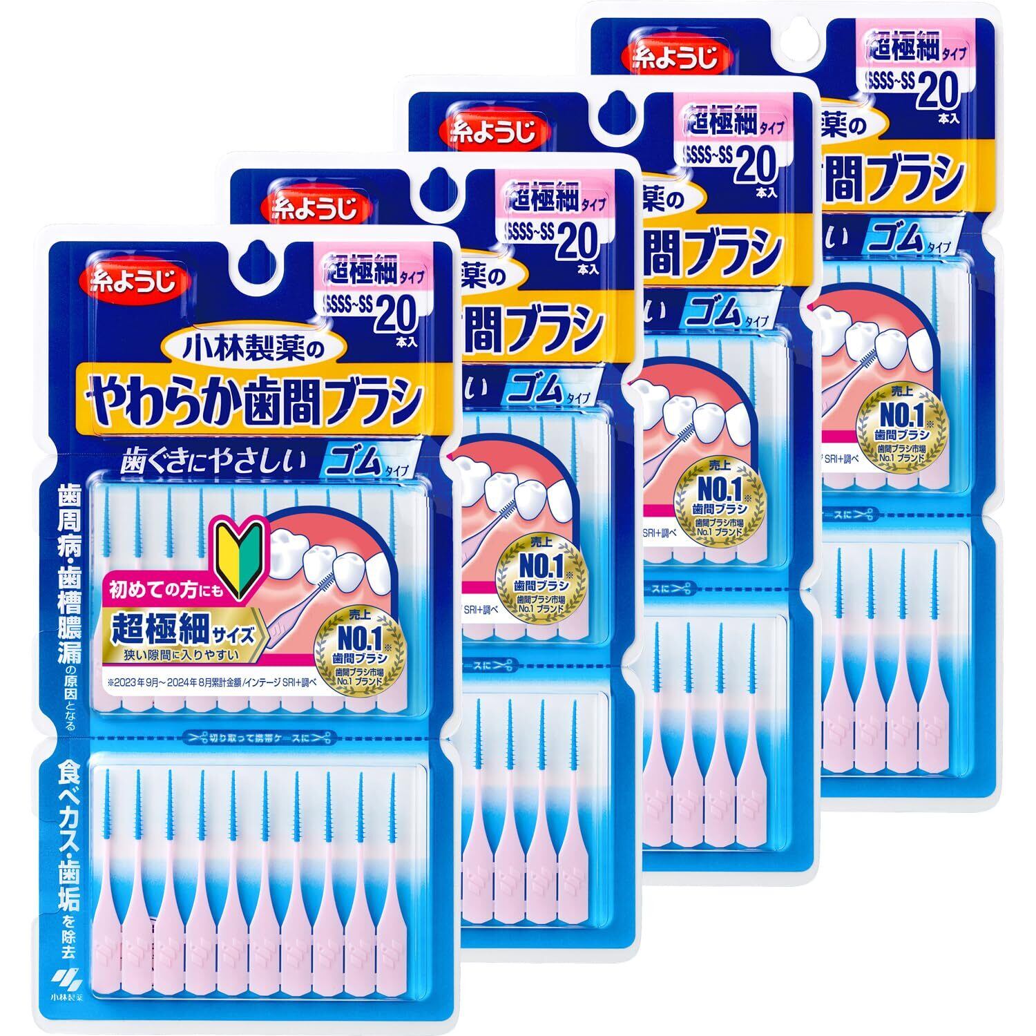 【まとめ買い】 糸ようじ 小林製薬のやわらか歯間ブラシ ゴムタイプ 歯間ブラシ 超極細タイプ SSSS-Sサイズ 20本×4個 ゴムタイプ (ブランド)