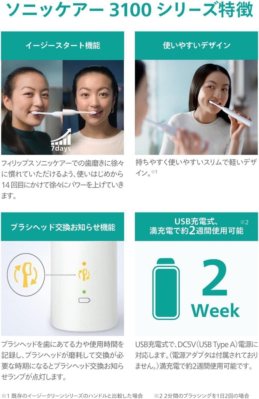 フィリップス 電動歯ブラシ ソニッケアー 3100シリーズ (軽量/USB充電式) HX3671/23 ホワイト