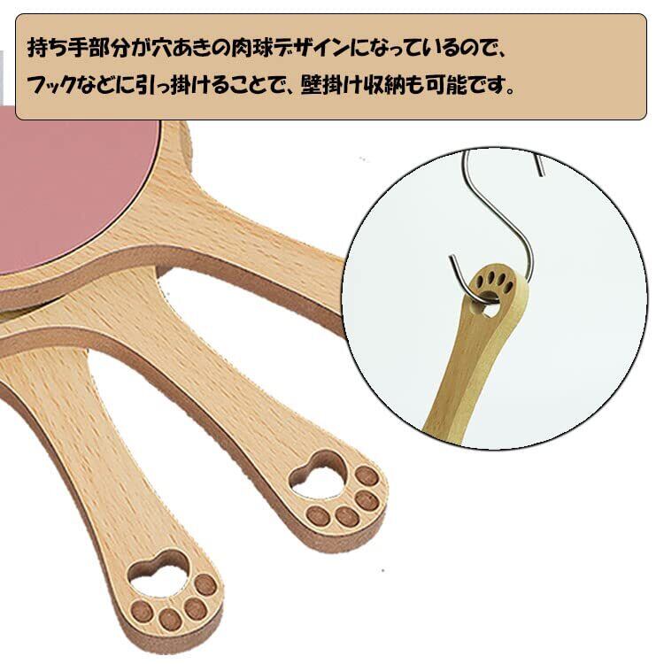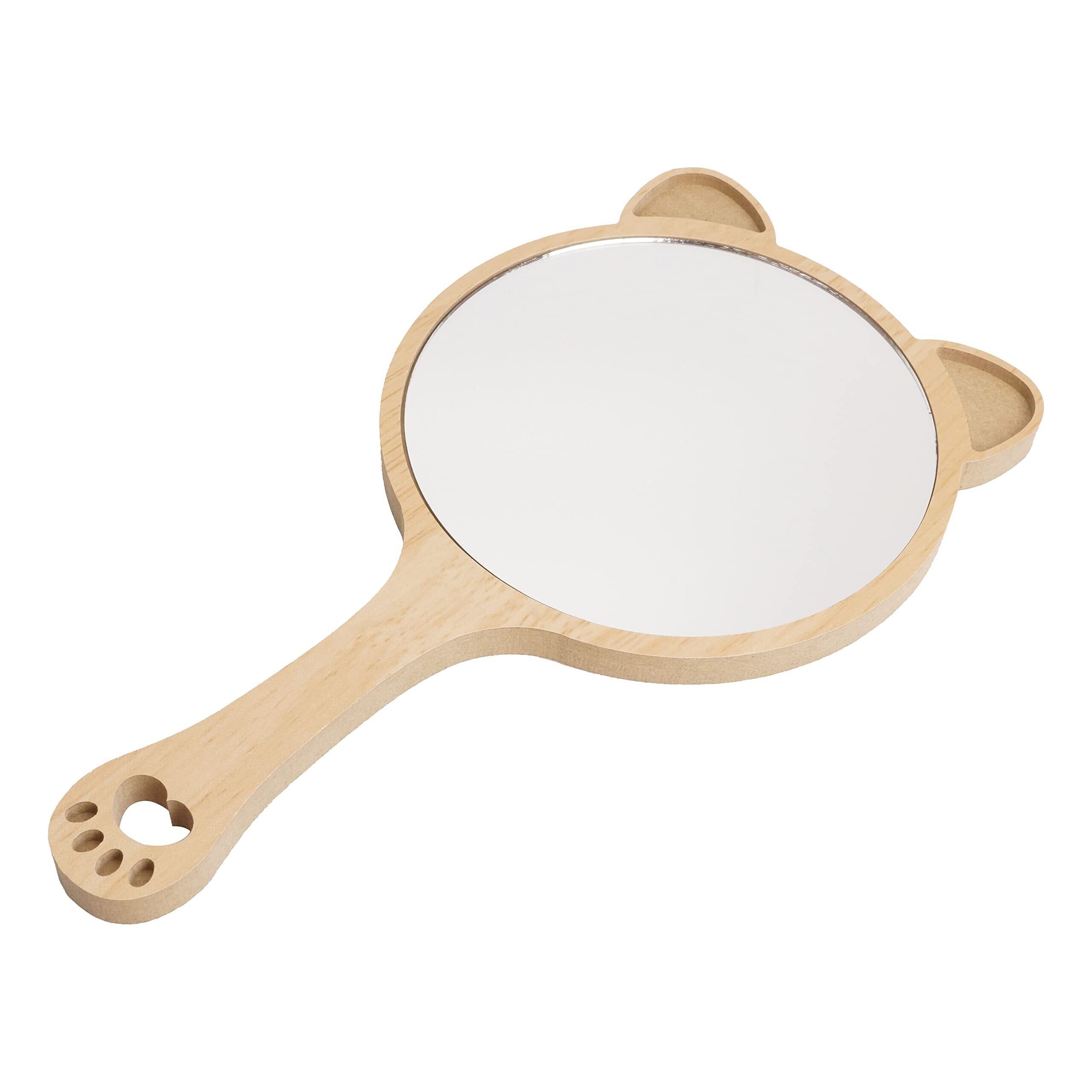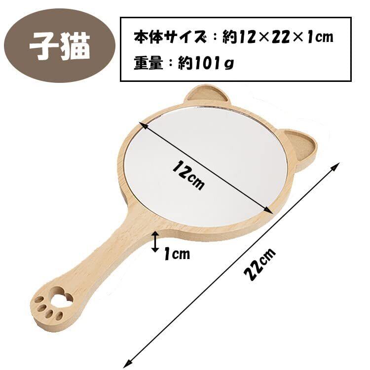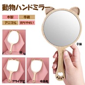 prendre ハンドミラー 手鏡 アニマル 動物 木製 鏡 吸血鬼 かわいい ナチュラル シンプル 肉球 取っ手付き (子猫) PR-MRRR03-NE