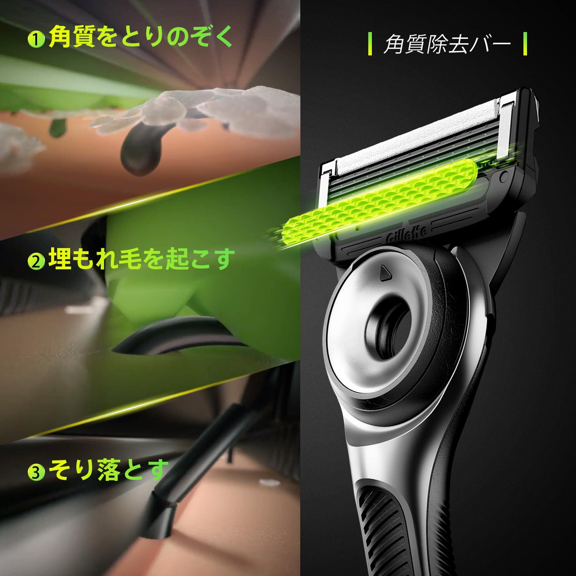 ジレットラボ角質除去バー搭載 1度のストロークで簡単シェービングと角質除去を。スベスベな肌へ。角質除去バー ヒゲを剃る前に、汚れや皮膚の古い角質を取り除く2Dフレックスディスク 顔の凹凸にフィットし、快適な剃り心地へ。極薄5枚刃 ジレット史上最高の極薄刃で肌への引っかかりを最小化。19%の肌への圧力の軽減。*カスタムプラス3との比較。ジェルスムサーで滑らかな剃り心地を実現。カミソリスタンド 刃を清潔に保ち、乾燥させ、使いやすくします。本製品の箱は紙を使用しております。120 年の精密さと技術の結晶。最高を、男の手に。髭剃り カミソリ 男性
