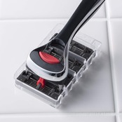 【深剃りにも適した5枚刃の替刃】しっかりと剃れる5枚刃タイプです。深剃りが好きな方はもちろん、4枚刃では物足りなかったという深剃り初心者の方もぜひお試しください。ホルダー+替刃は1個入りでお試しで使用する場合に適しています。