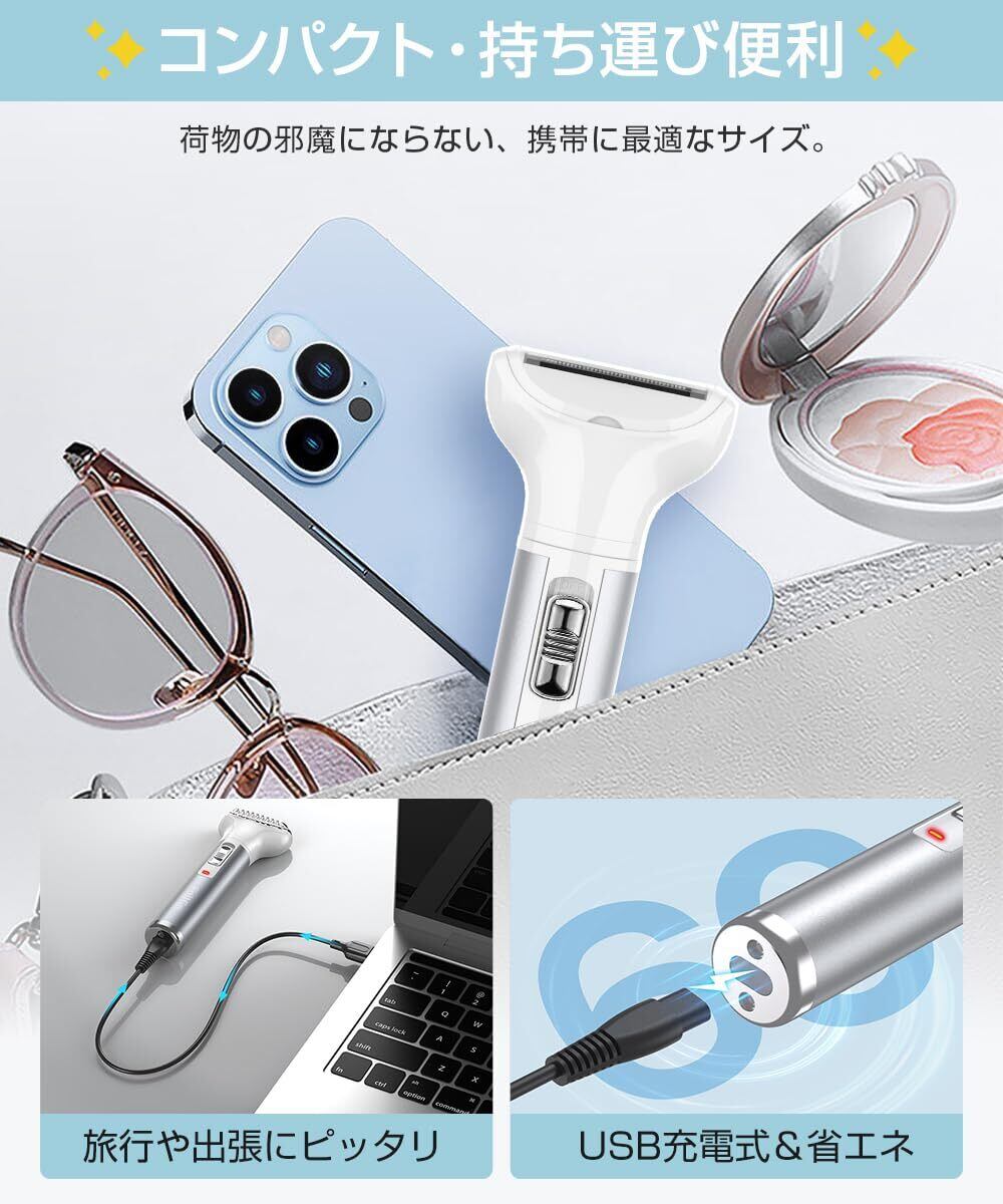 【USB充電式・エコ】USB充電式なので、コンセントの心配は不要。どこでも充電が可能なので、旅行や出張先でも安心してこの レディース シェーバー をお使いいただけます。さらに、環境に優しいエコ設計で、シェイバー 女性用が長時間の使用が可能です。