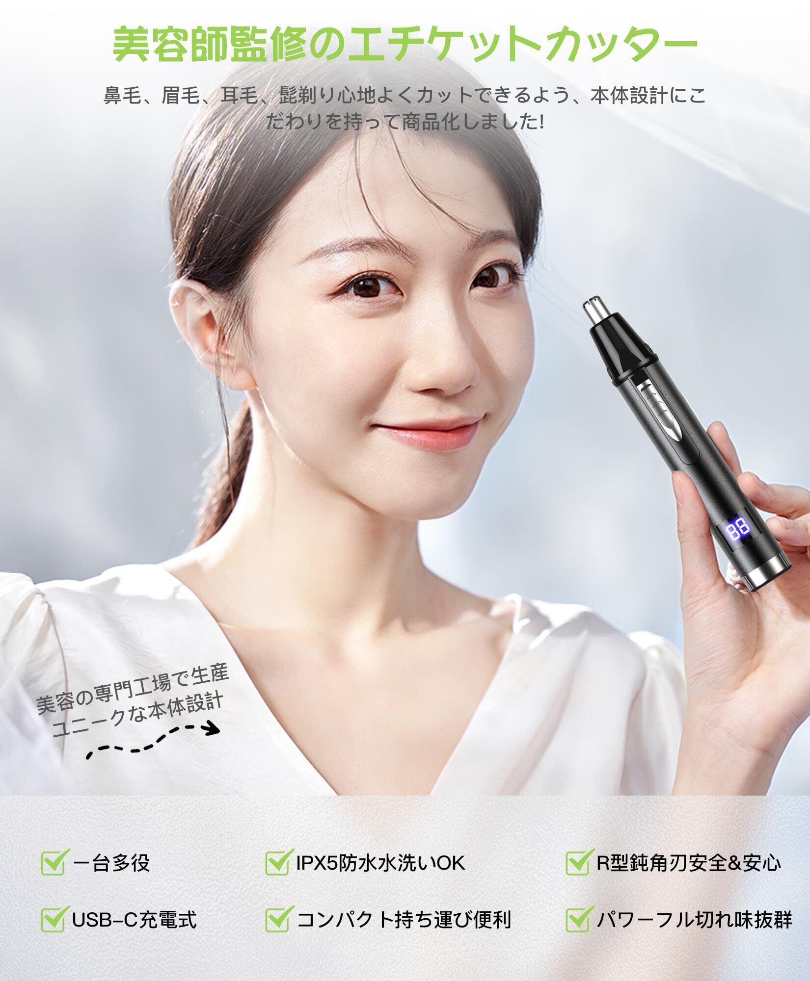 鼻毛カッター メンズ 【1台3役・LCD画面・USB-C充電式】 眉毛シェーバー 鼻ケアカッター 電動 エチケットカッター まゆけシェーバー メンズ レディース フェイスシェーバー ノーズトリマー 耳毛カッター 耳げカッター 鼻毛切り 鼻毛そり 顔/髭剃り 産毛/ムダ毛/無駄毛処理 電気シェーバー 水洗い可 男女兼用 低騒音 ブラック