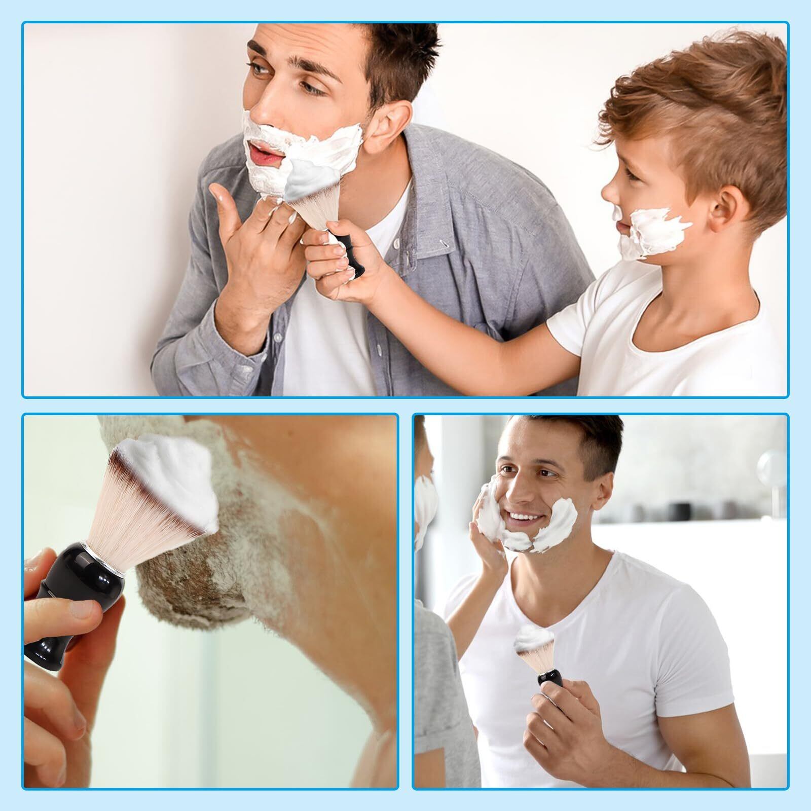 【シェービングブラシ】シェービングブラシは効果的に豊かな泡を生み、シェービングクリームを塗ると同時に肌の汚れを優しく取り除き、肌を清潔に見せ、顔に水分をもたらします。女の子たちもこの髭剃りブラシを使って足や腕の毛を取り除き、脱毛 に快適な環境を提供することができます。 【高品質材質】シェービングブラシの毛髪の柔らかさは良質な合成材料と木製のハンドルを採用し、色褪せ、脱落、変形しにくい、木製のハンドルに色収差があるのは正常な現象ですので、ブラシを洗う際に水に浸さないようにしてください。 【髭剃りを楽しみ、ストレスを緩和】髭剃り石鹸、クリーム、ジェルを使っても、この柔らかいブラシの毛はこんなに簡単になります。この柔らかい髭剃りブラシは、石鹸をひげに均一に塗りながら顔をマッサージすることができます。