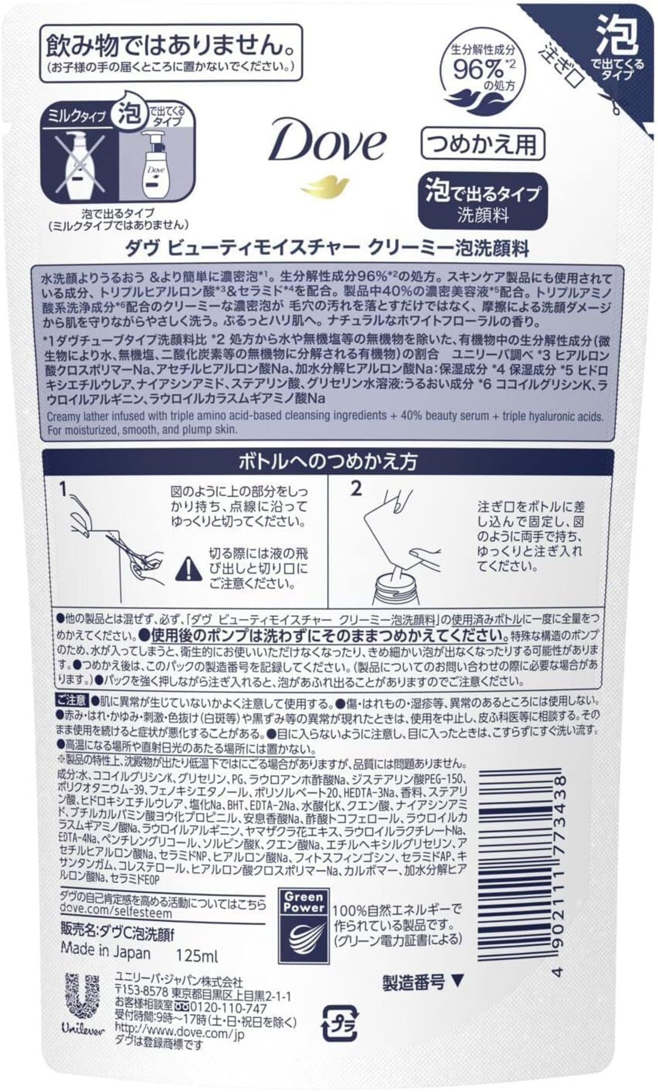 【まとめ買い】 Dove(ダヴ) ビューティモイスチャー クリーミー泡洗顔料 詰め替え用 125ml×3個 おまけ付き