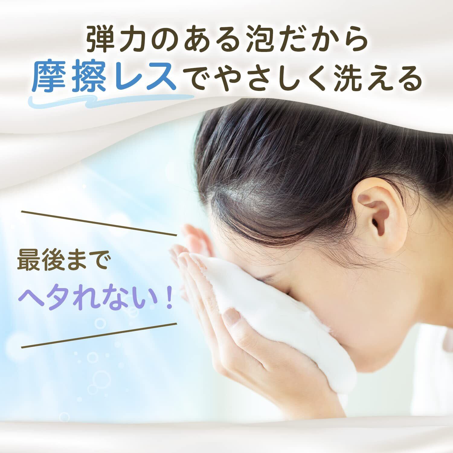 ふわふわした泡がクッションとなりデリケートな肌を守りながら汚れを吸着、保湿成分※で肌にうるおいを残してやさしく洗い上げます[※吸着性ヒアルロン酸]