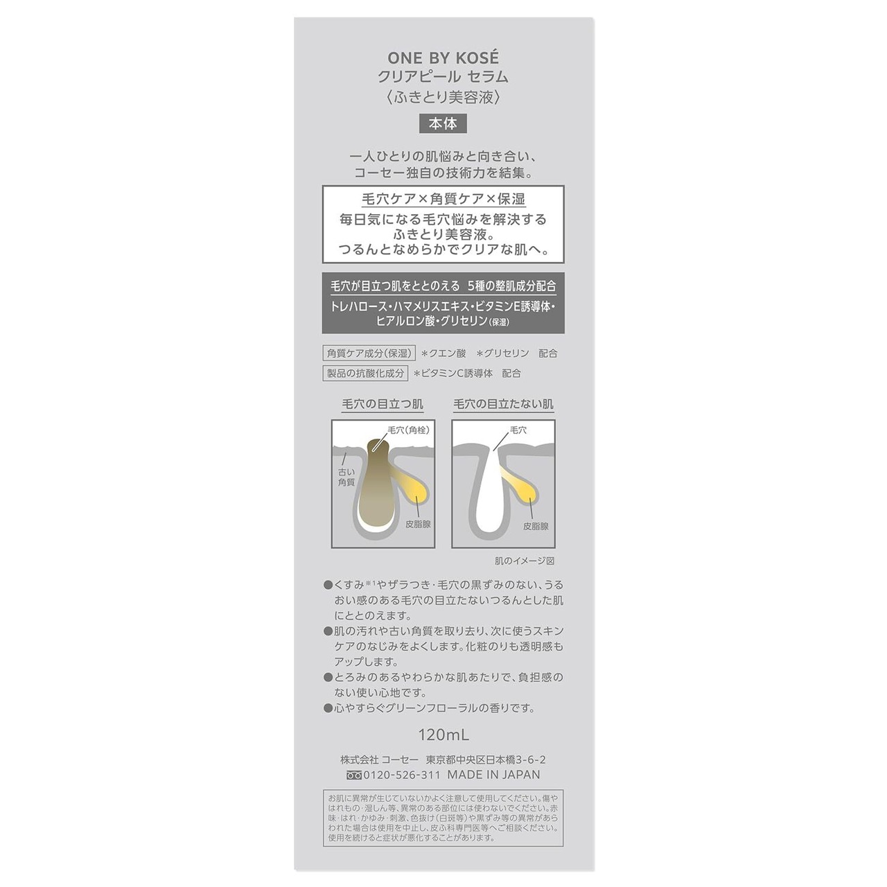 ONE BY KOSE(ワンバイコーセー) ふきとり美容液 毛穴 クリアピール セラム 本体 120mL 角栓 角質 保湿 ビタミンE誘導体 ヒアルロン酸 グリセリン