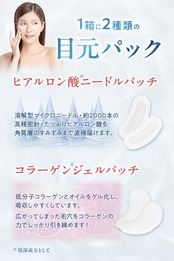 【日本企業企画・日本語サポート】使用にご不快があればお気軽にまでご連絡ください。ご連絡方法:ご購入履歴から製品画面を開く=>右側(カート)の下方に[販売元]後ろの会社名をクリックする=>新画面の右上に[質問する]ボタンをクリックする。●ご使用方法:1.就寝前の洗顔後に化粧水や乳液を使って肌を整えます。2.フィルムからパッチをはがして目元や口元お気になる部分に貼り付けます。3.パッチを貼ったまま就寝します(5時間以上お薦めます。時間が少ないと針状のヒアルロン酸が溶けない可能性があり)