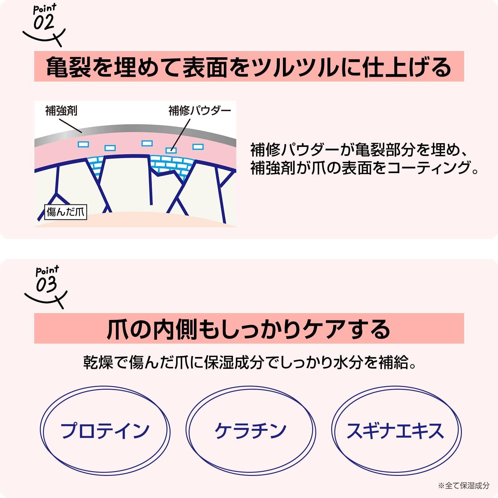 保湿成分のケラチンやスギナエキスが爪の内側もケアし健康的な爪に。