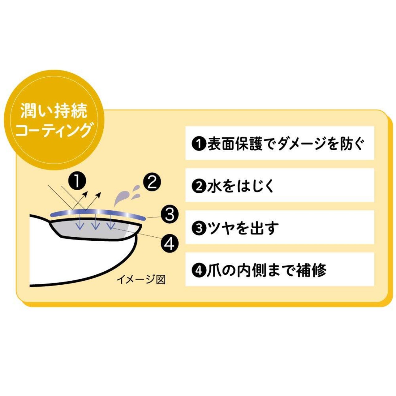 ●爪強化成分配合・・・爪に厚みをプラス。7種の天然・植物由来 美容成分配合で爪に浸透補修し潤いが持続します。