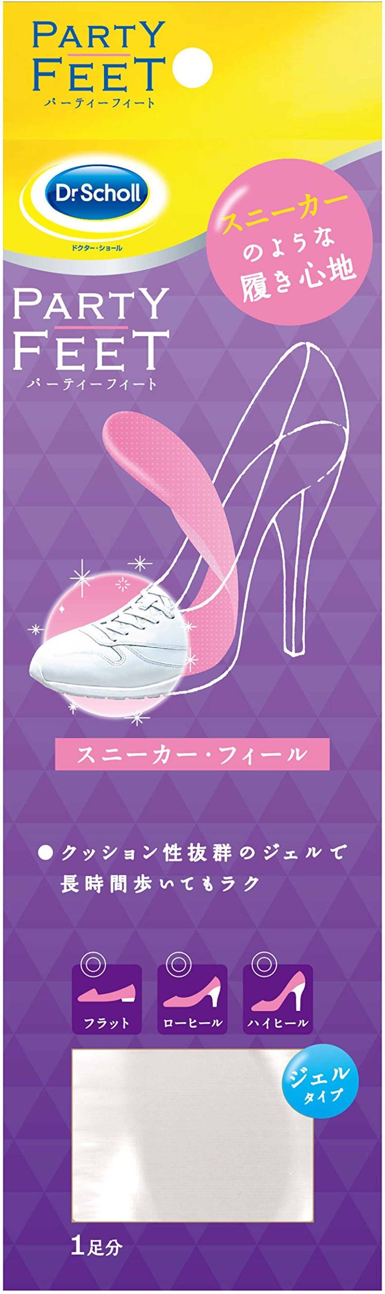 「パーティーフィート スニーカー・フィール」はハイヒールのためにデザインされたジェルインソールです。