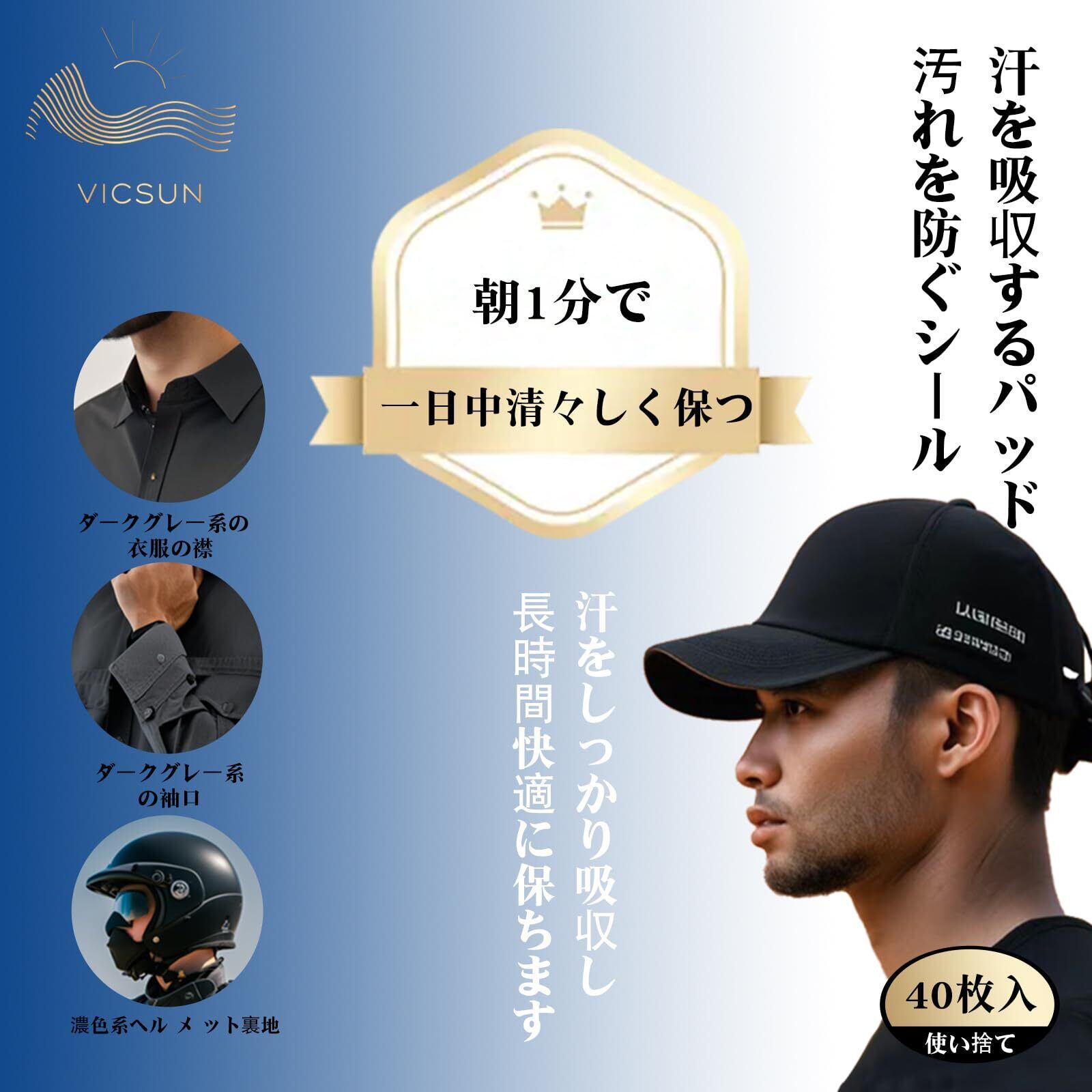 VICSUN 襟汚れ防止テープ・帽子 汗取りテープ セット - 汗吸収シートで襟汚れ・帽子汚れを防ぐ!エリ・ソデ汚れ、皮脂汚れ対策に 40枚入り (黒)