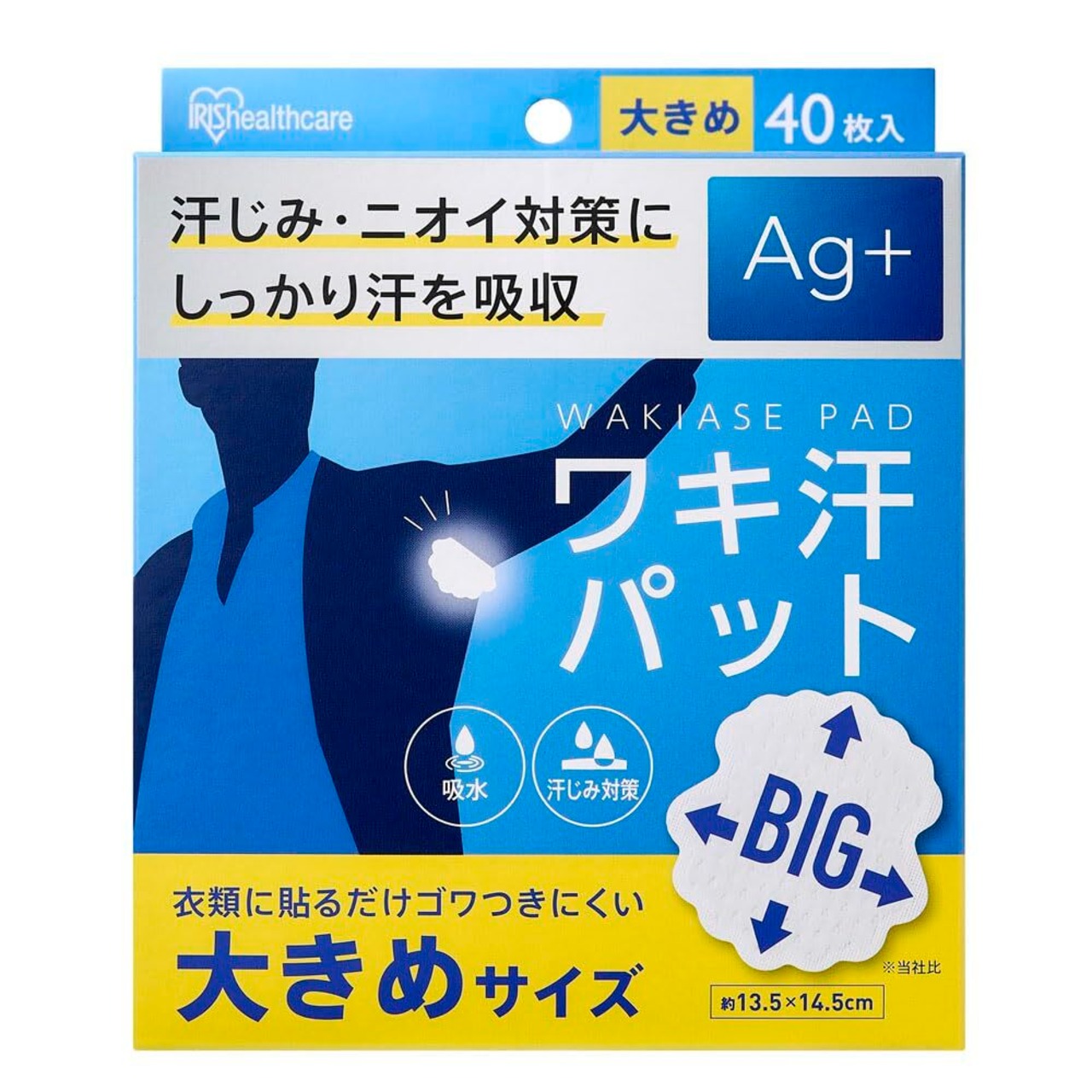 アイリスオーヤマ ワキ汗パット 大きめサイズ 40枚入り WAP-40L 男性 銀イオン配合 抗菌 消臭 汗ジミ対策 ニオイ対策 ゴワつきにくい 夏 スーツ 吸収 やわらかい肌触り