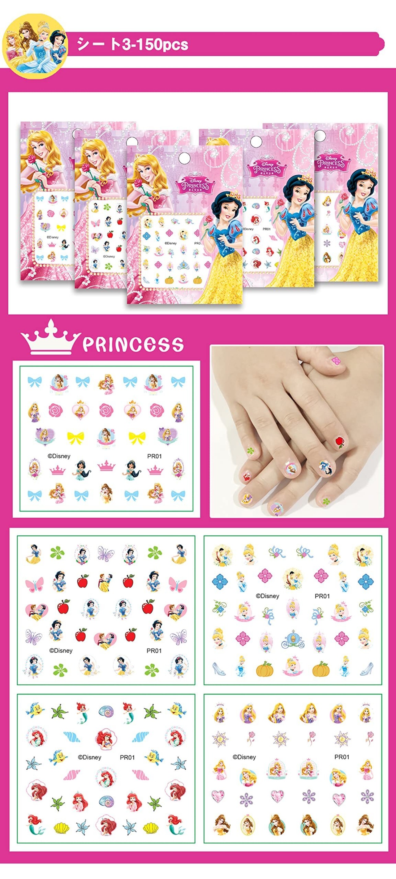 BWANY 12セット 可愛い ディズニー ネイルステッカー ネイルシール 防水3Dネイルデコレーション用 女の子、子供用 極薄 こどもネイルステッカー かわいい DIYネイルツール