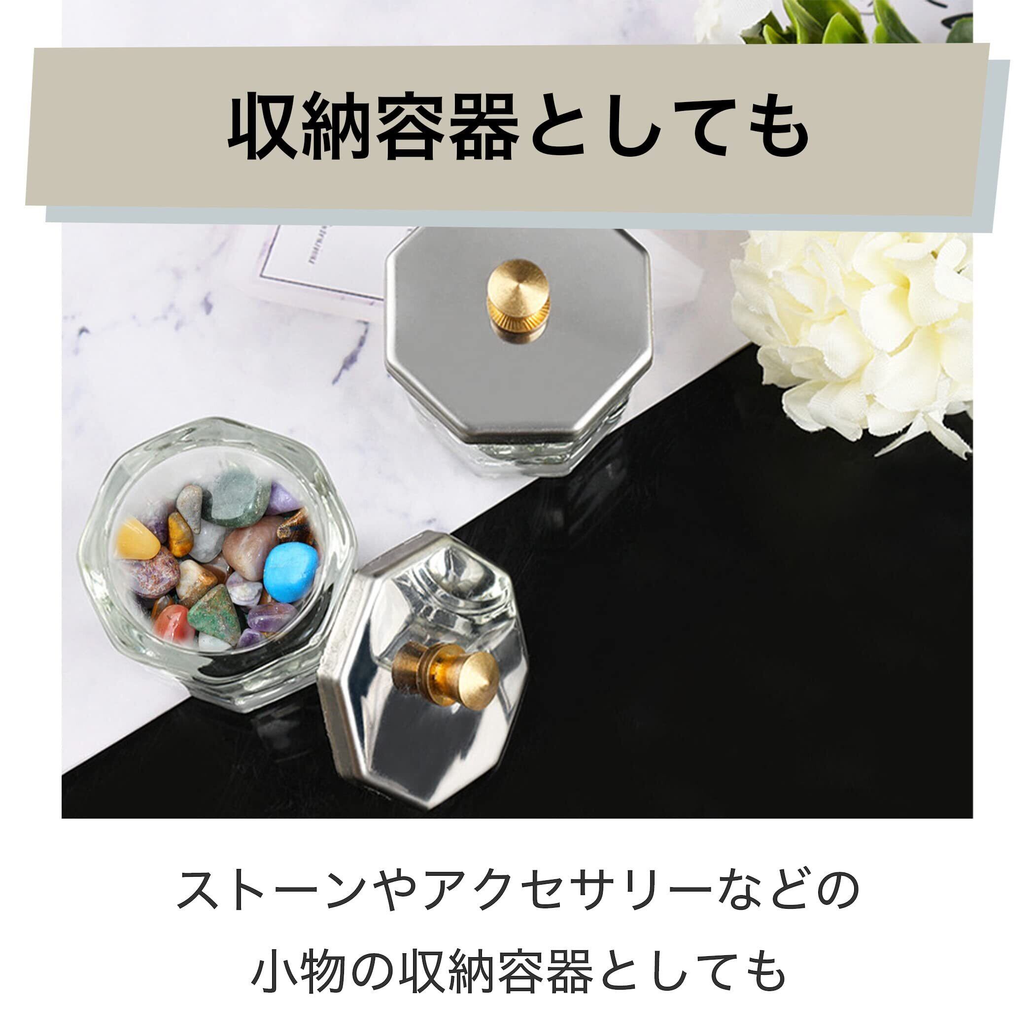 セット内容:2個セット サイズ:約33×34mm 素材:ガラス、ステンレス 重さ:約39g 付属品:アクリルトレイ(サイズ:約150×100mm 付属品:スパチュラ) ※モニターの環境等により、色の見え方に若干差が生じる場合がございます。