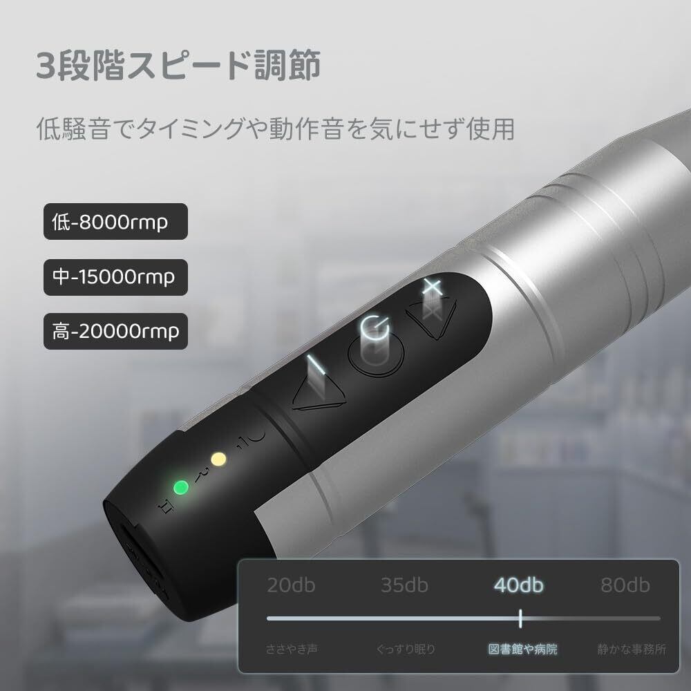 50db以下低騒音&放熱材質----高品質なアルミ合金は効率的に熱を放散することができ、ネイルマシンが長時間動作しても本体が熱くなりにくいため、安心してご使用いただけます。 先進なモーターを使っており、音の大きさに不快感を感じなくて振動も少ないです。