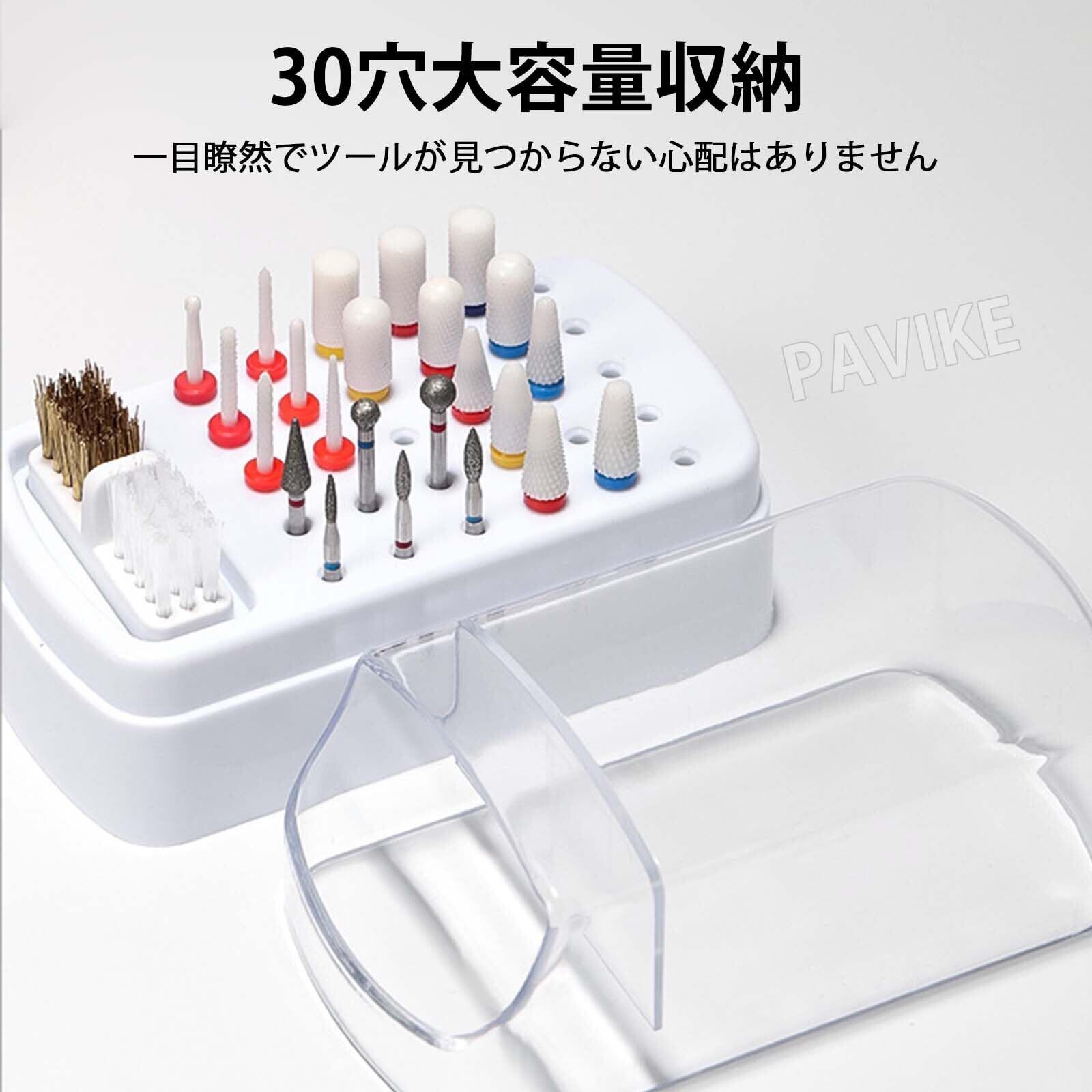 PAVIKE ネイルビット ホルダー クリーニングブラシ付き 30穴 大容量 防塵 透明 ネイルマシン ビット ネイルドリルビット ホルダー ネイルドリル