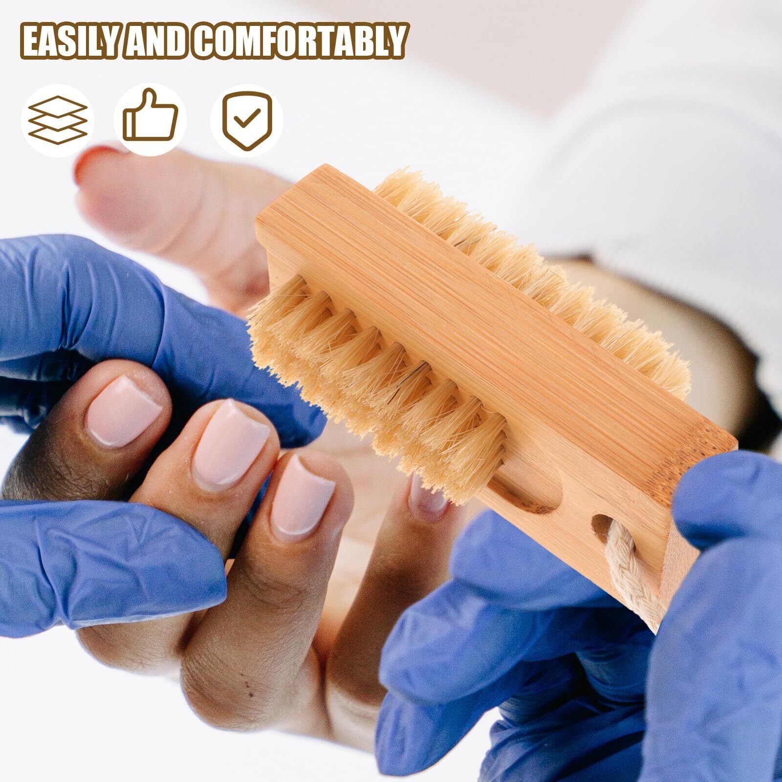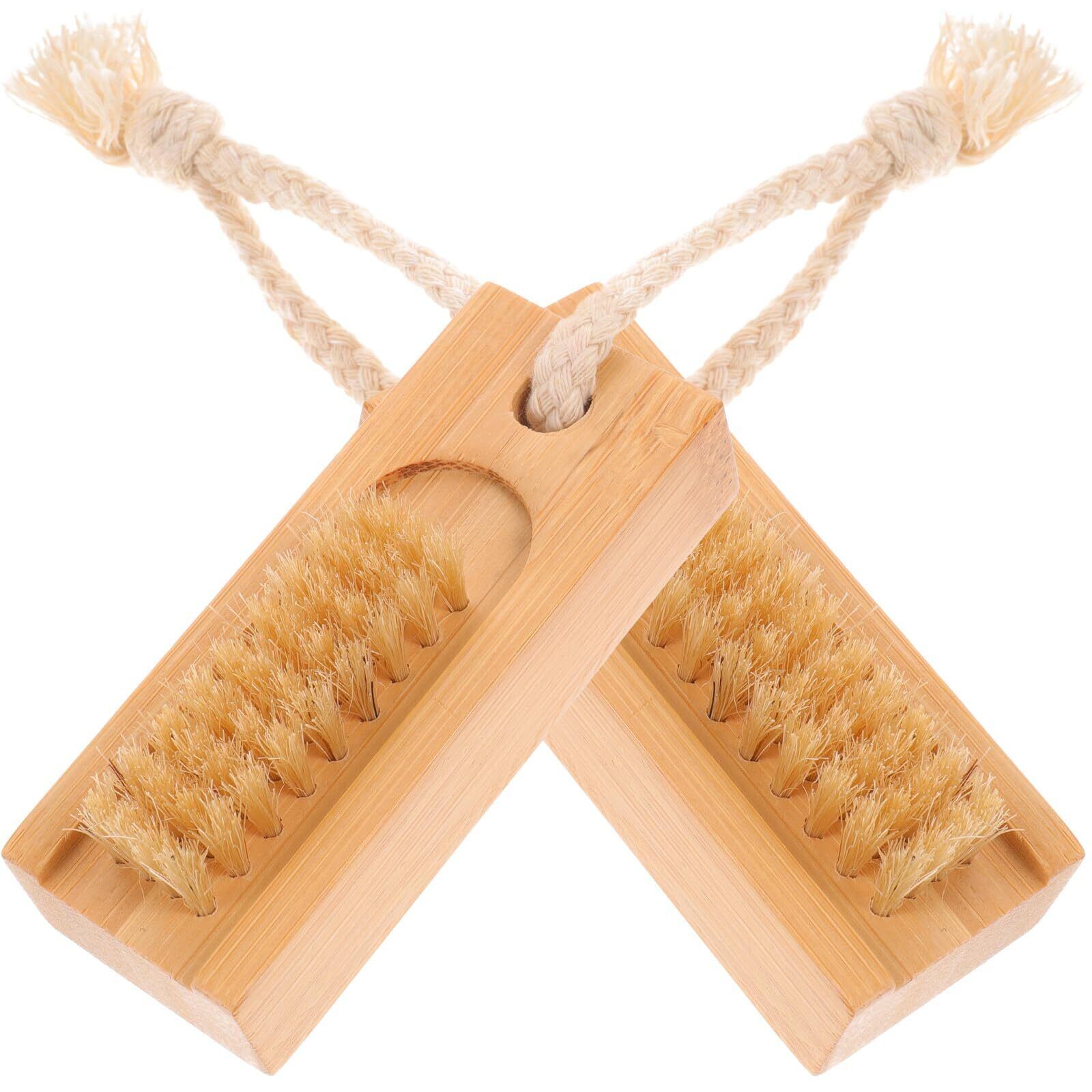 Beaupretty 爪ブラシ 2個セット ネイルブラシ 木製 手洗いブラシ 両面使用可能 爪洗いブラシ クリーニング 爪 スクラブ ブラシ 付き 吊るし ロープ 9.7x3.8cm
