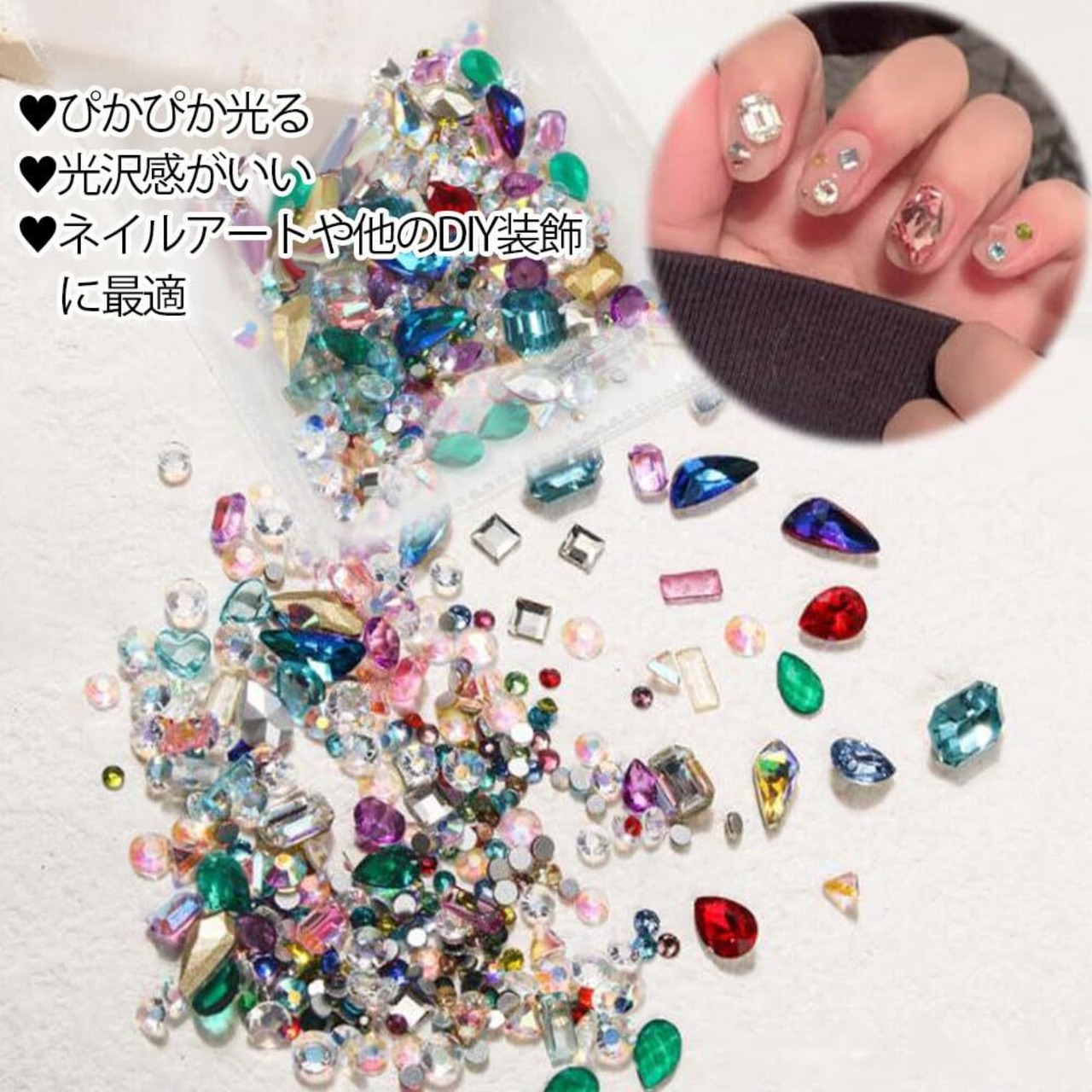 ✨セット内容:ラインストーン約約250粒セット(人工的に数えられているため、誤差がある場合がありますのでご了承ください。)、サイズ:異形、大きいサイズ+小さいサイズ。カラー:複数色。(ランダム出荷なので、色、形、デザインはランダムですので、購入前によく考えてください。ご了承ください。)