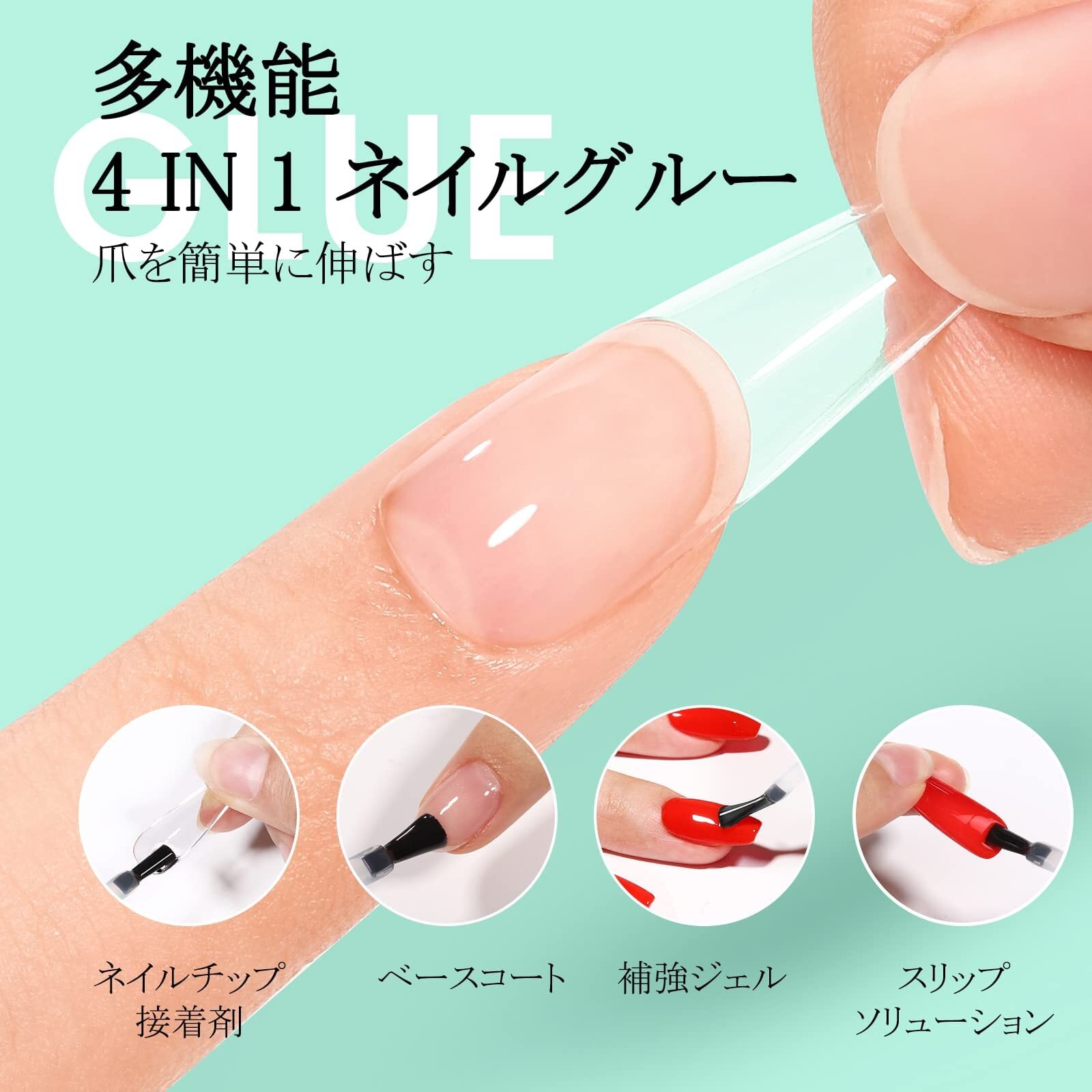 【4-IN-1ネイルグルー】このジェルは、一般的なネイルチップ接着剤、ベースコート、補強ジェルとして使用できます。ポリジェル専用のスリップソリューションとしてもお使いいただけます。4つの機能が一体になり、コストパフォーマンスに優れ、様々な用途で、お金を節約できます。