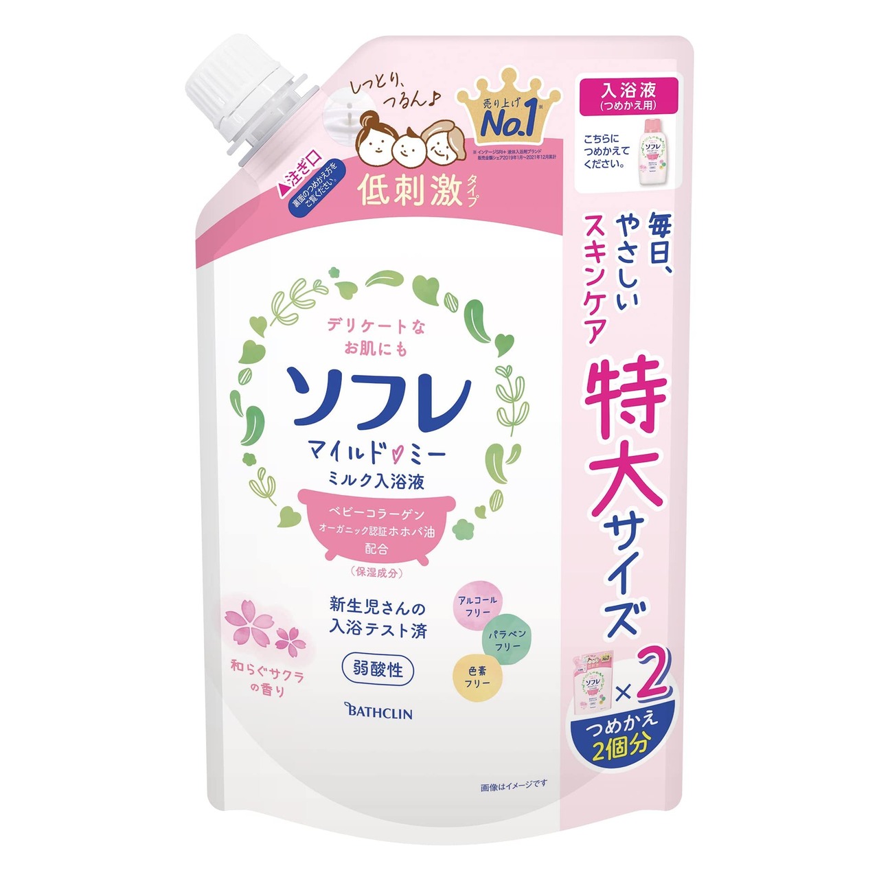 ソフレ マイルド・ミー ミルク入浴液(詰め替え用) 和らぐサクラの香り【大容量】ピュアホワイト色(にごりタイプ) 1200ml(約20回分)バスクリン