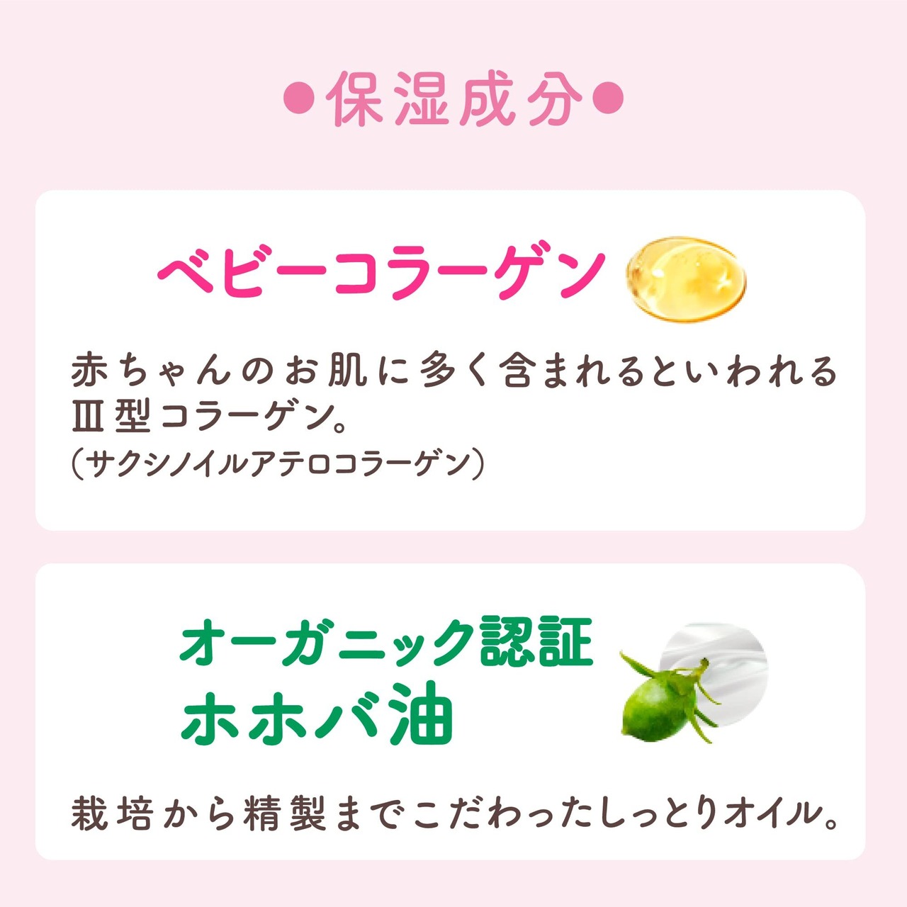 ●たっぷり使えるお得なつめかえ大容量タイプ●カサカサお肌をミルク入浴液がやさしく包み、しっとり、つるんと潤います。●保湿成分配合・ベビーコラーゲン配合(赤ちゃんの肌に多く含まれるといわれるIII型コラーゲン)※サクシノイルアテロコラーゲン・オーガニック認証ホホバ油配合(栽培から精製までこだわったしっとりオイル)●弱酸性●アルコールフリー●パラベンフリー●色素フリー●新生児による入浴テスト済●アレルギーテスト済(すべての方にアレルギーが起こらないというわけではありません)