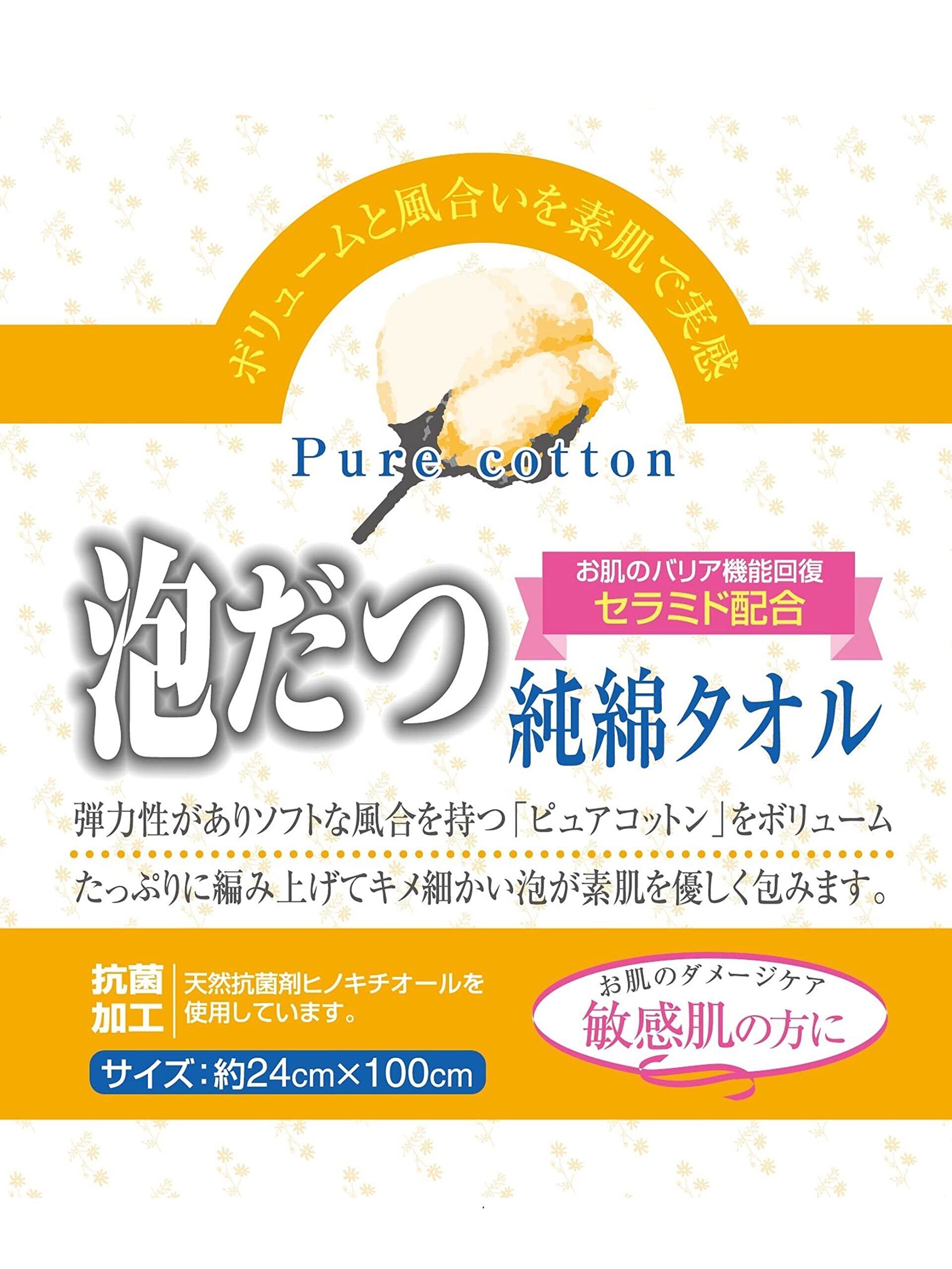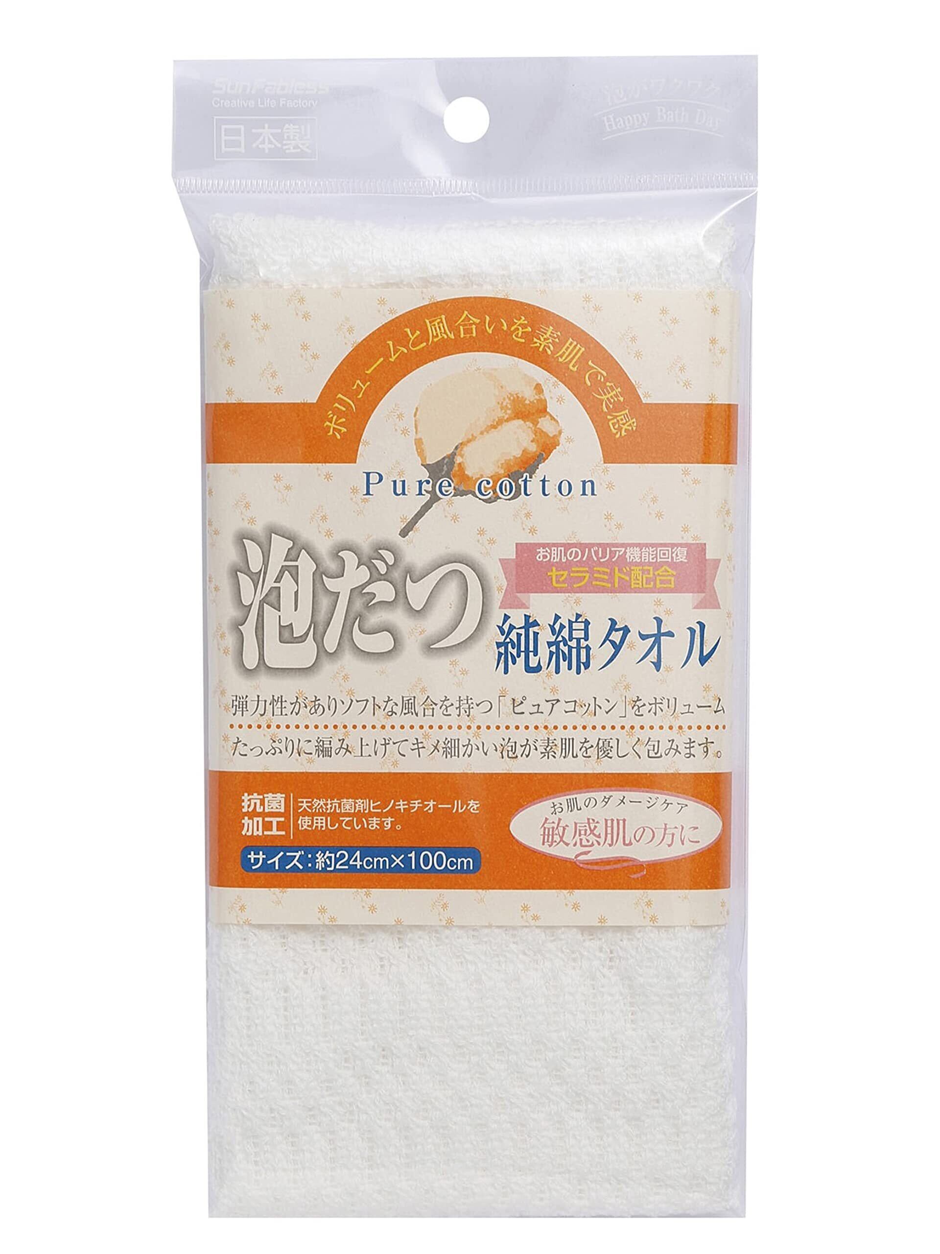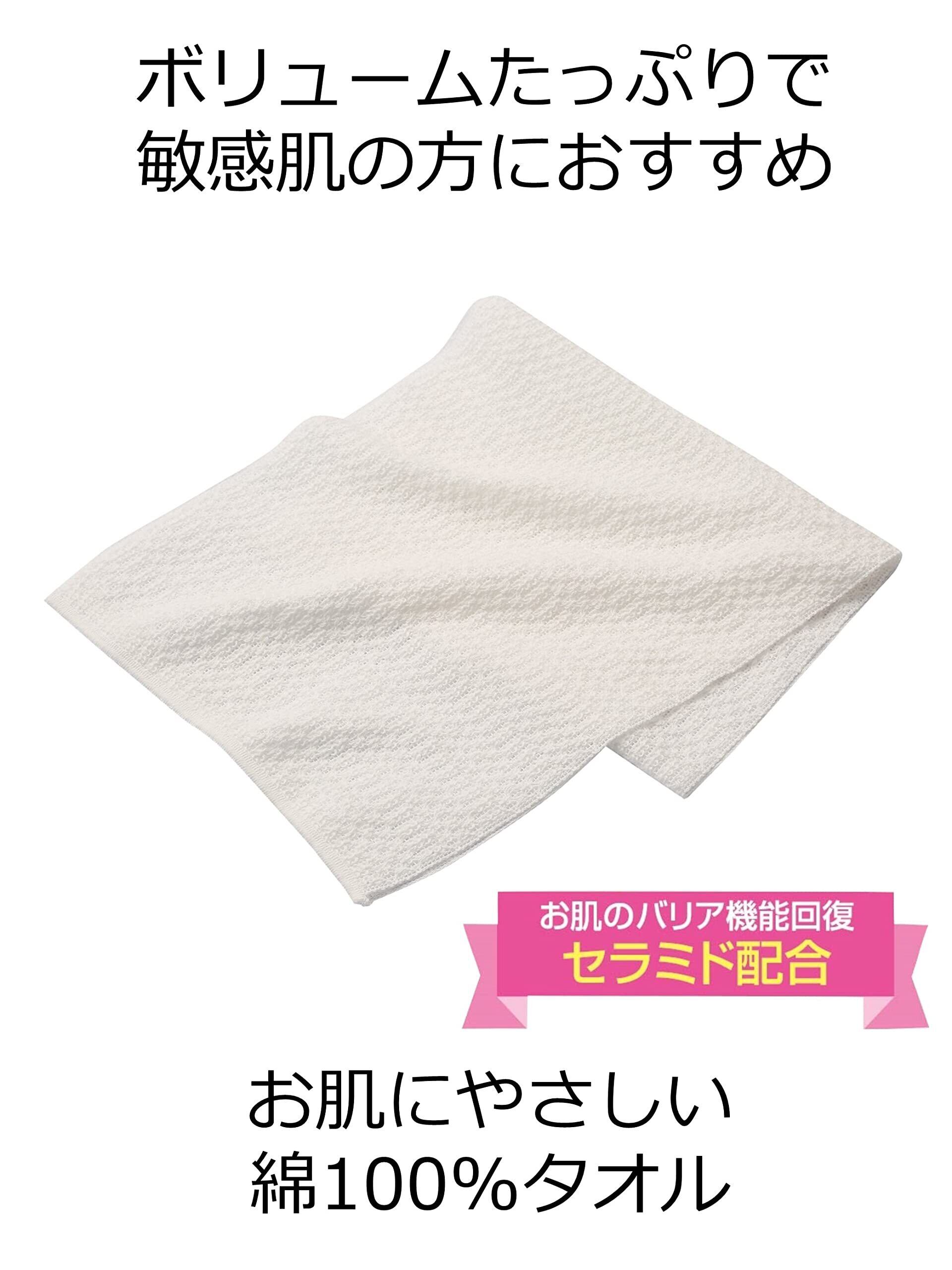 お肌に優しい綿100%タオルです。ボリュームたっぷりで敏感肌の方におすすめです。