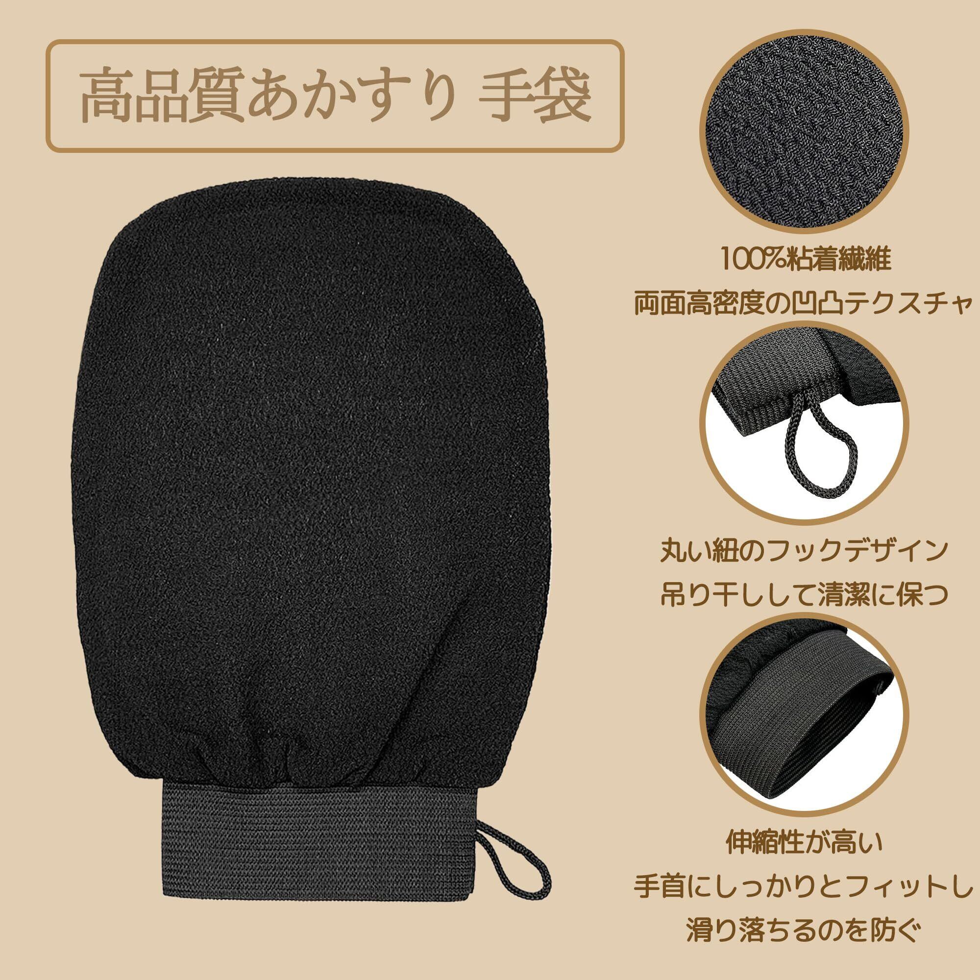 【フレキシブルサイズ】このアカスリ手袋のサイズは約15*20cmで、ほとんどの人に対応します。伸縮性のあるリストバンドは手首から滑り落ちないようにしっかりとフィットし、左右どちらの手でも使えます。男女兼用で、繰り返し使用可能です。2枚入り(白・黒)