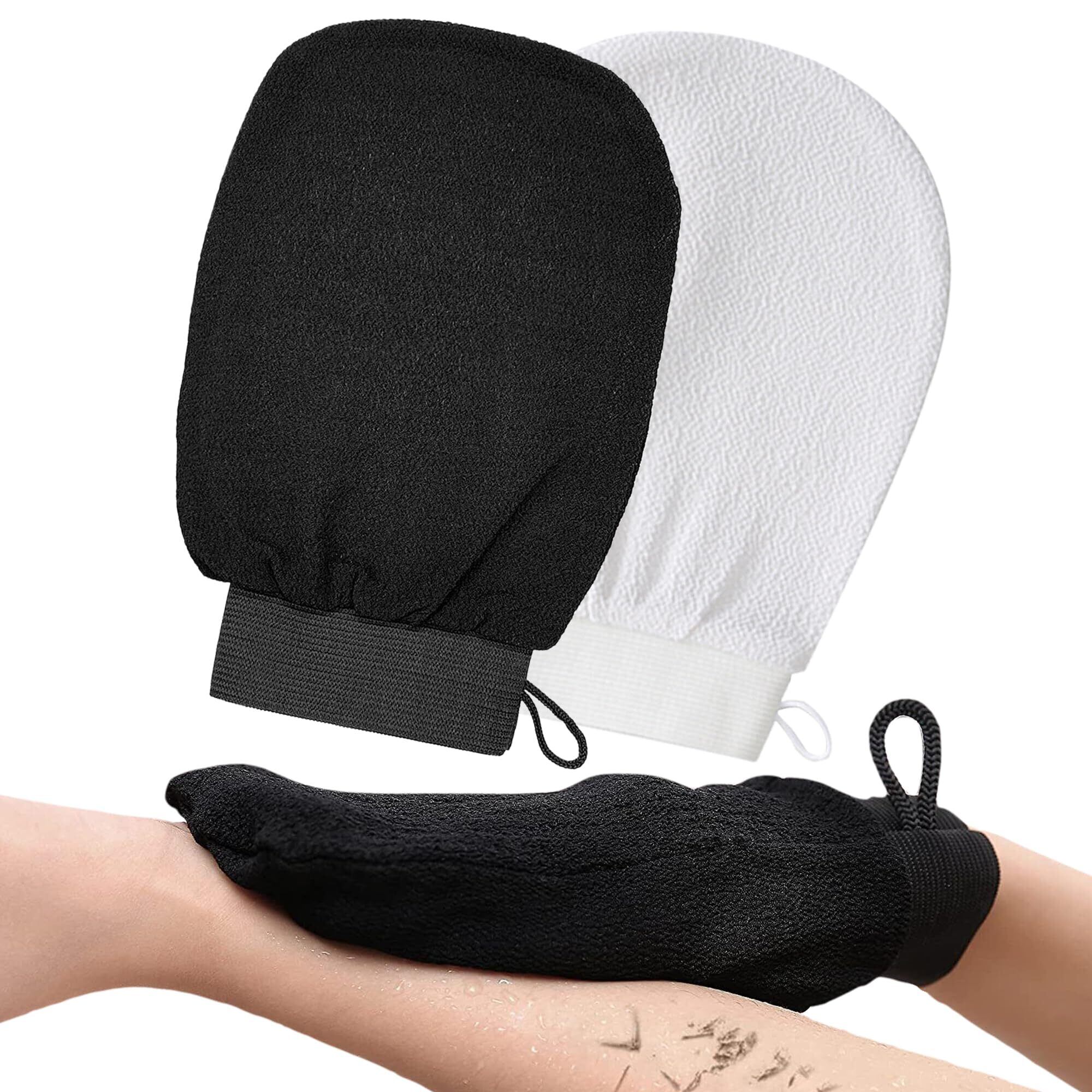 DEVENTORZ あかすり 垢すり タオル 垢擦りミトン あかすり 手袋 お風呂用ブラシ デッドスキンリムーバーミット スキンケアスクラブグローブ 男女兼用 肌に優しい 角質取り 垢擦り お風呂 浴用 手袋 角質ケア (ホワイト+ブラック)