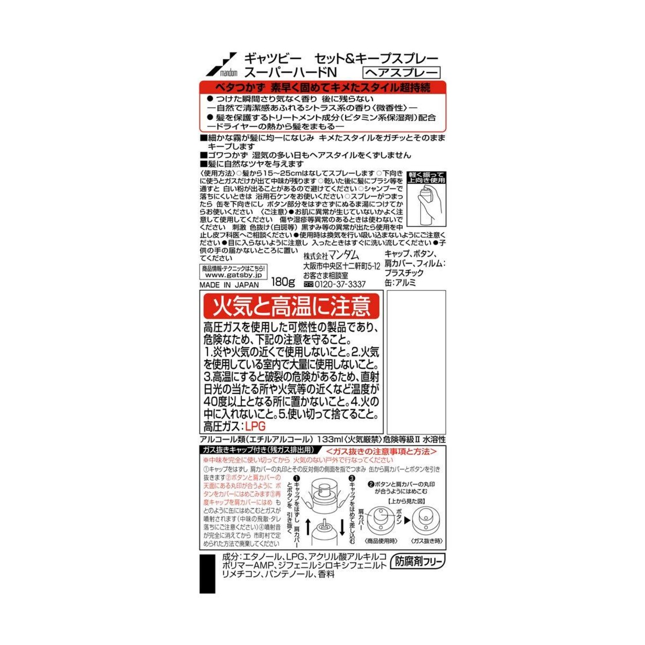 GATSBY(ギャツビー) セット&キープスプレー スーパーハード メンズ スタイリング剤 ヘアスプレー アテンションラベルレス仕様 単品 180グラム (x 3)