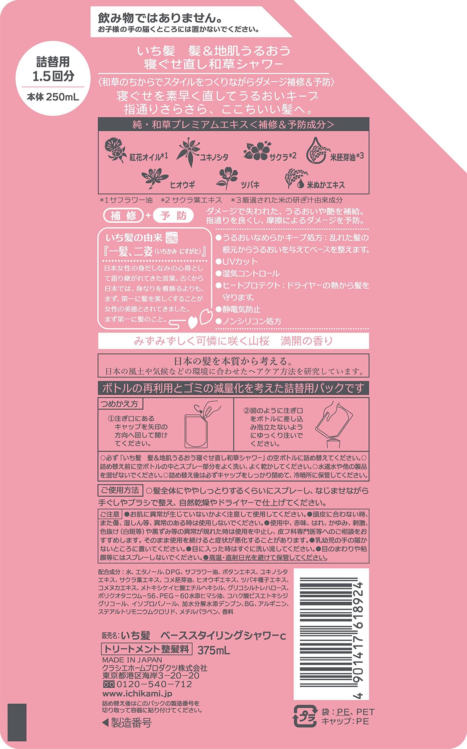 いち髪 髪&地肌うるおう 寝ぐせ直し 和草シャワー 詰め替え 375ml×2 セット おまけ付き | 寝癖直しウォーター ヘアミスト ヘアウォーター スタイリング ヘアケア ダメージケア 補修