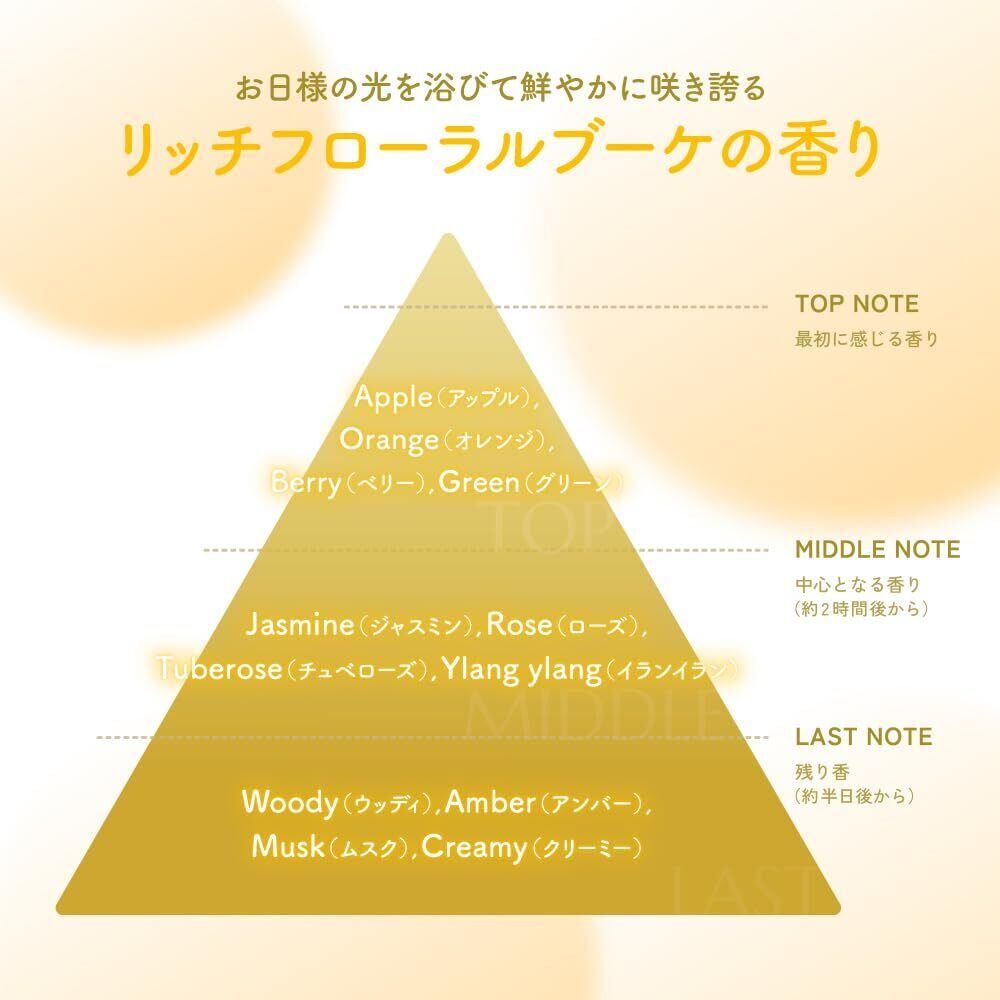 【特別な香り】お日様の光を浴びて鮮やかに咲き誇るリッチフローラルブーケの香り。