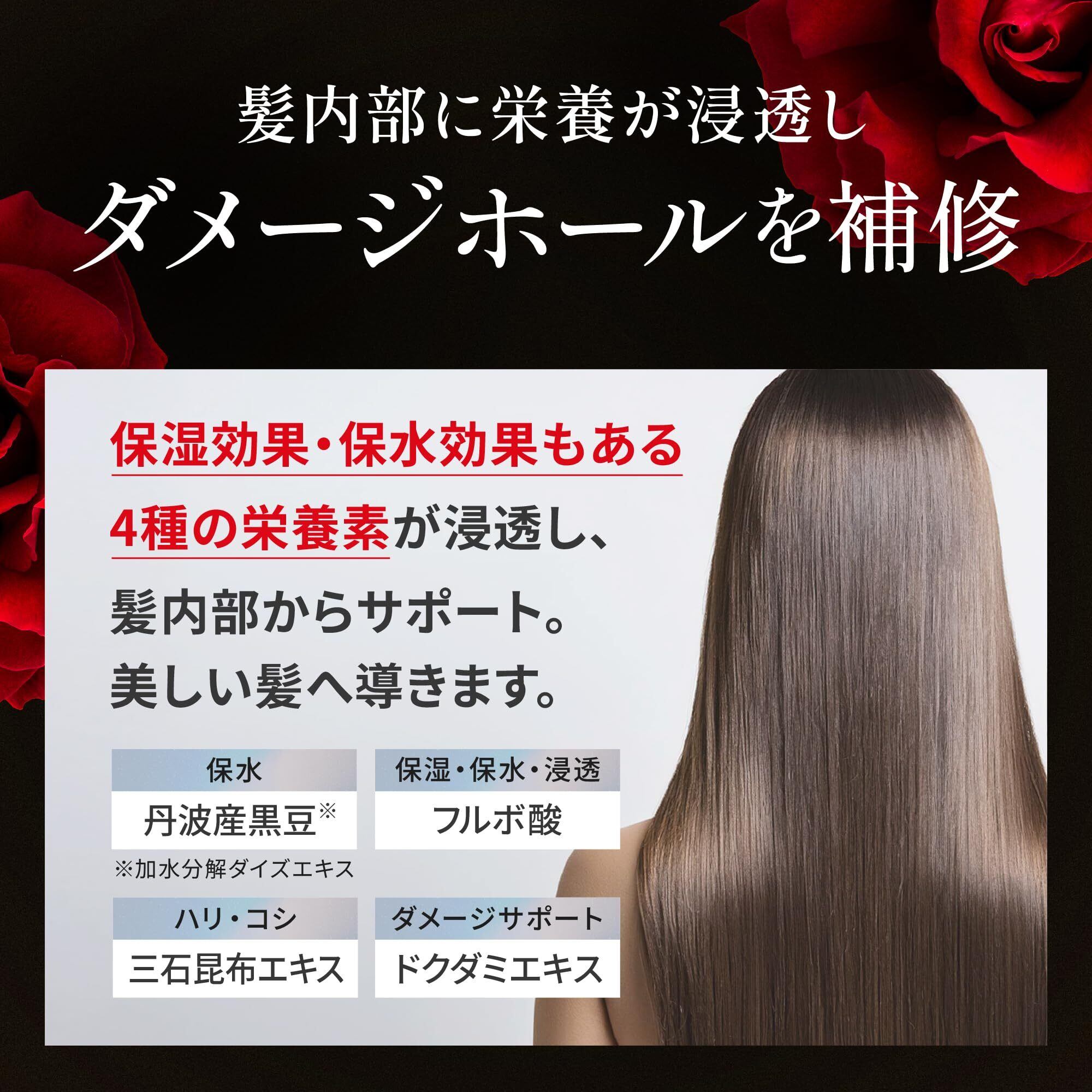 【含まれているさまざまなエキス】丹波黒豆に含まれるエキス:アントシアニン イソフラボン レシチン コリン タンパク質 食物繊維 ミネラル ビタミン ほかにKUROクリームシャンプーに含まれるエキス 北海道日高産三石昆布エキス フルボ酸 ドクダミエキス チャ乾留エキス カキタンニン ダマスクバラ花油 加水分解ケラチン クロスポリナー ひまわり種子油 ローズマリー葉油 ニオイテンジクアオイ油 ラベンダー油 バオバブ種子油 アルガン二アスピノサ核油 カンゾウ根エキス センブリエキス オウゴン根エキス オトギリソウ花/茎/葉エキス ザクロ果皮エキス トウキセンカ花エキス 加水分解ダイズエキス ダマスクバラ花エキス ラベンダー花エキス ローズマリー葉エキス ハイビスカス花エキス ホホバエキス