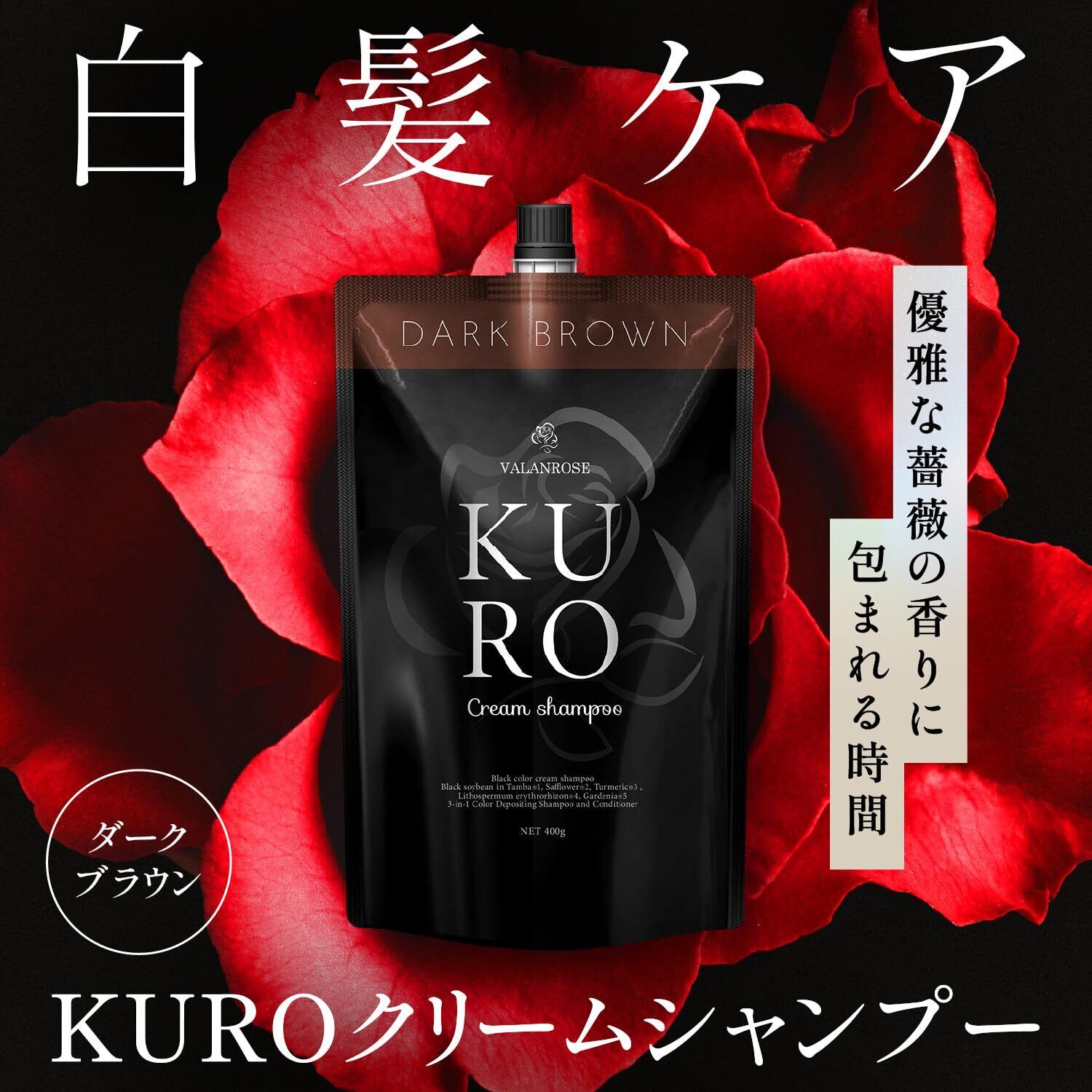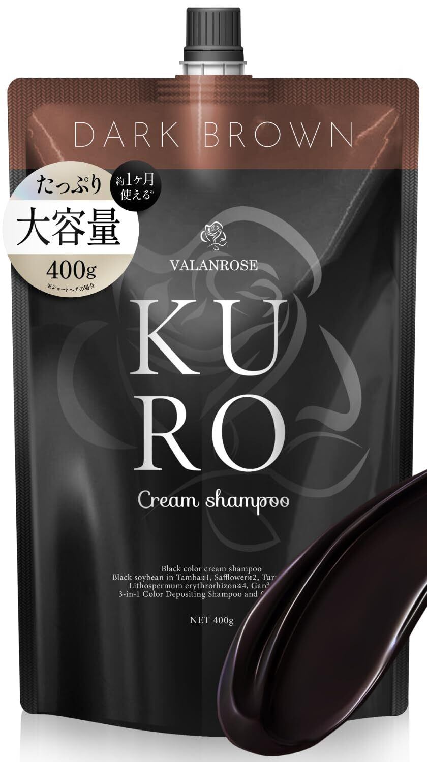 【1本7役】VALANROSE バランローズ KUROクリームシャンプー 400g ダークブラウン 白髪用 シャンプー トリートメント 女性 レディース/男性 メンズ カラーシャンプー カラートリートメント セミパーマネントカラー