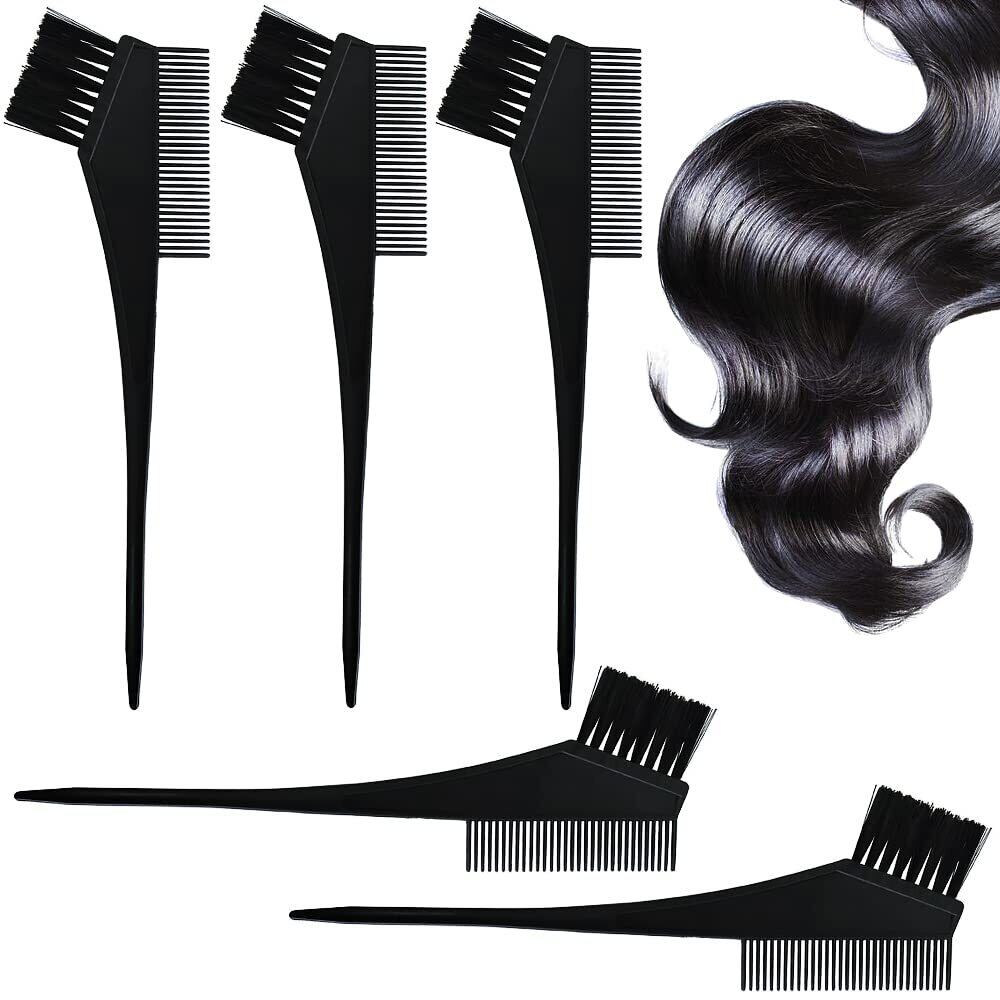 ヘアダイブラシ 5個セット 髪染めブラシ 髪染め コーム ヘアカラーの用具 ヘアダイコーム 細かい櫛歯 柔らかい毛のブラシ DIY髪染め用 家庭 美容院用 男女兼用 便利 軽量 プラスチック製(ブラック)
