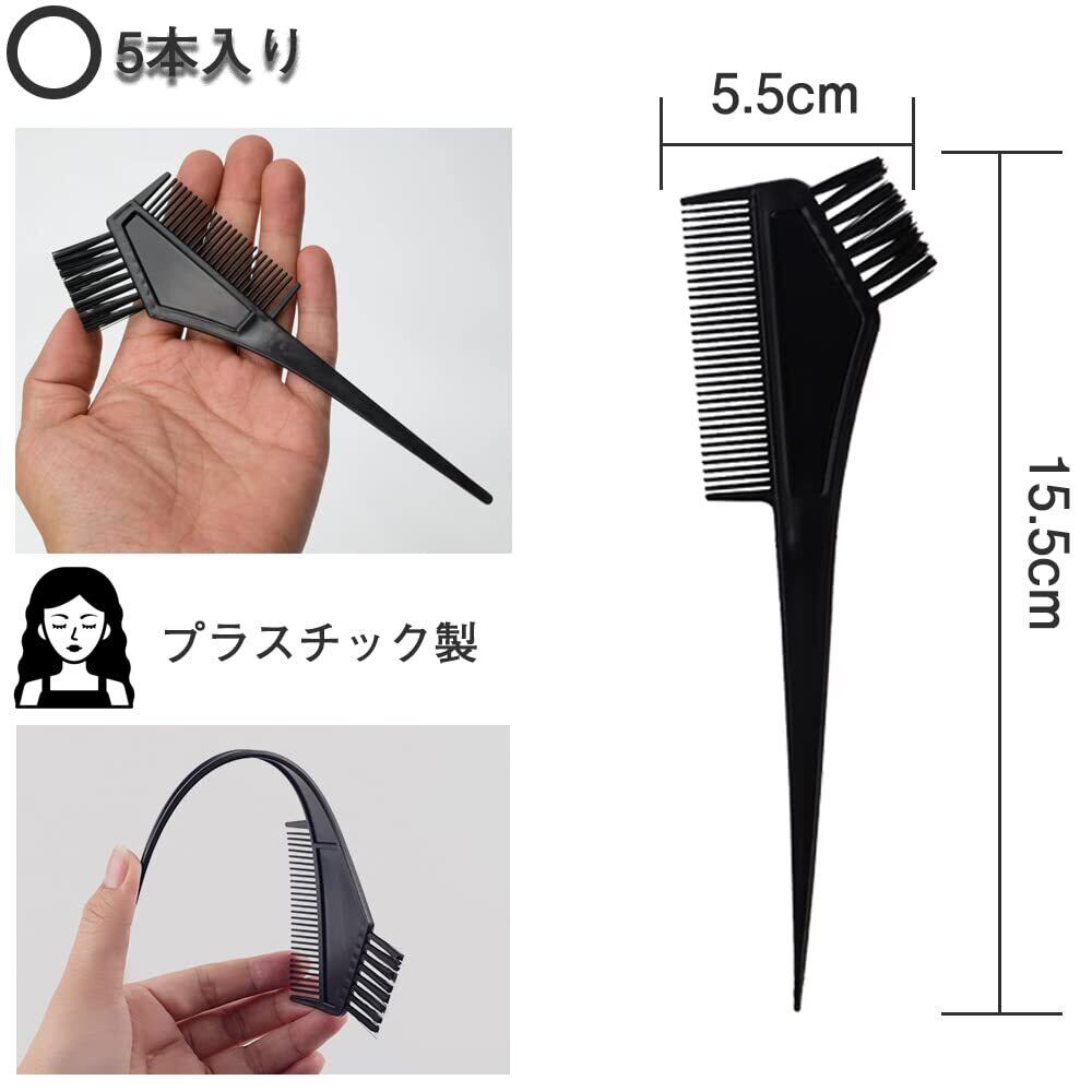 セット内容:5本入り (家庭用ヘアカラーブラシ、美容師用コームの二刀流)サイズ:約15.5*5.5cm 軽量で扱いやすい カラー:ブラック 素材:プラスチック製