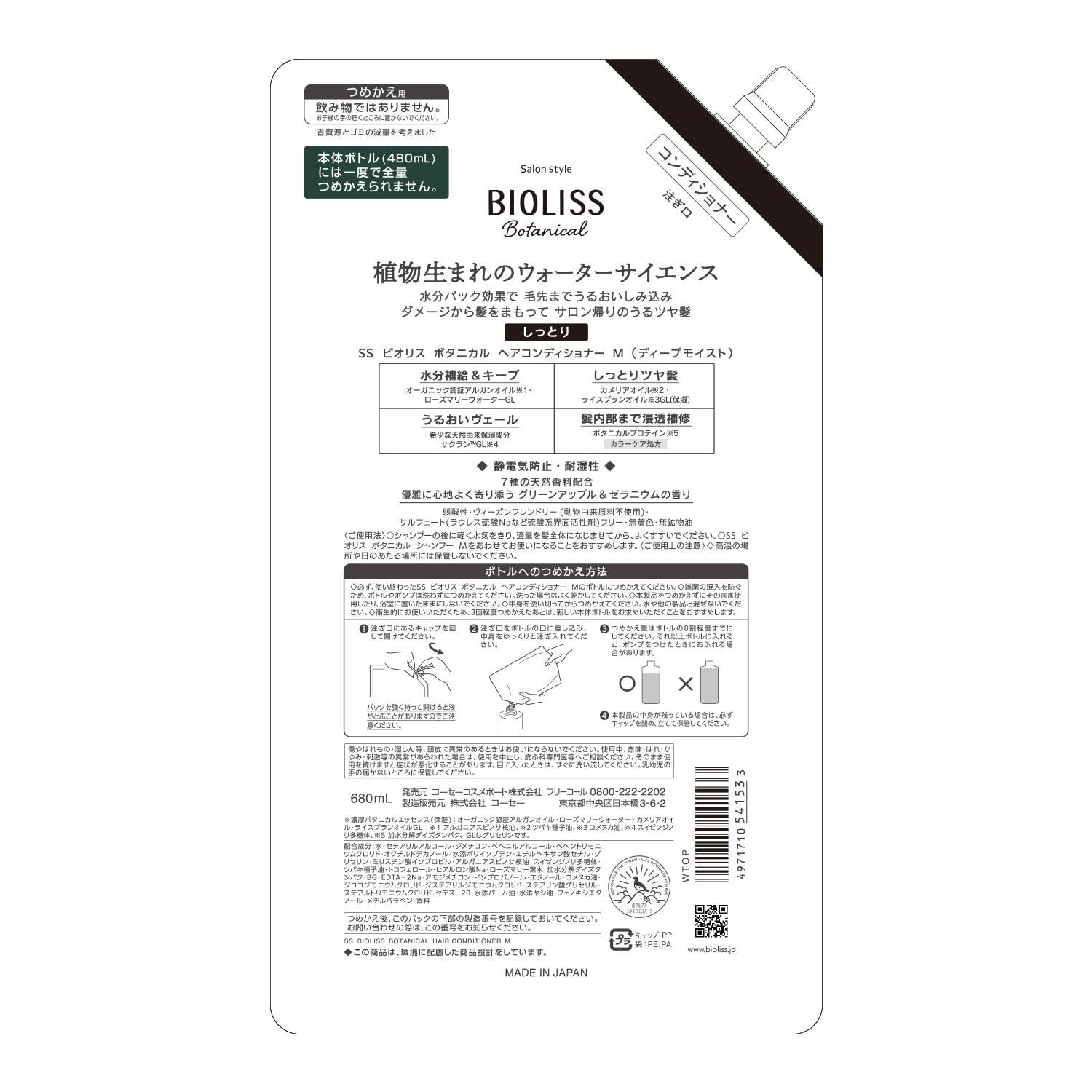 SALON STYLE(サロンスタイル) KOSE ビオリス ボタニカル コンディショナー (ディープモイスト)つめかえ 大容量 680mL (通常サイズ2個分) おまけ付き