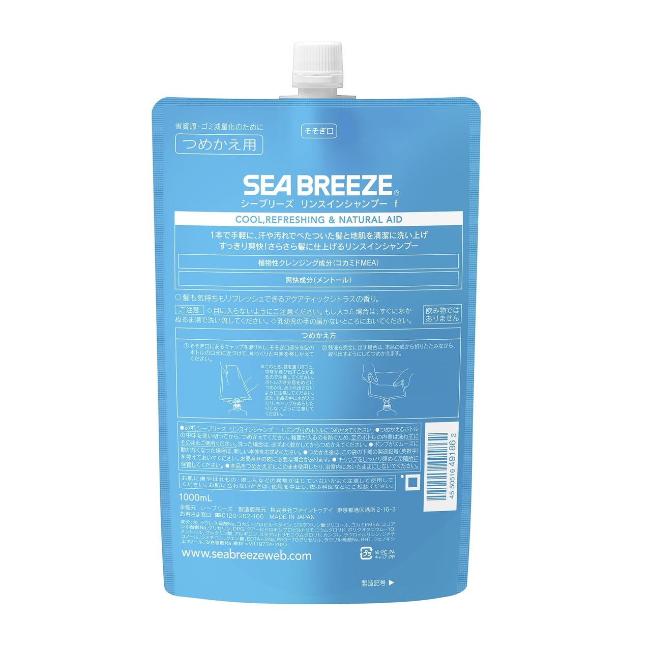 【まとめ買い】シーブリーズ SEA BREEZE リンスインシャンプー 詰替え 1,000ml×3+おまけ 汚れ べたつき すっきり爽快 サラサラ 大容量 メンズ