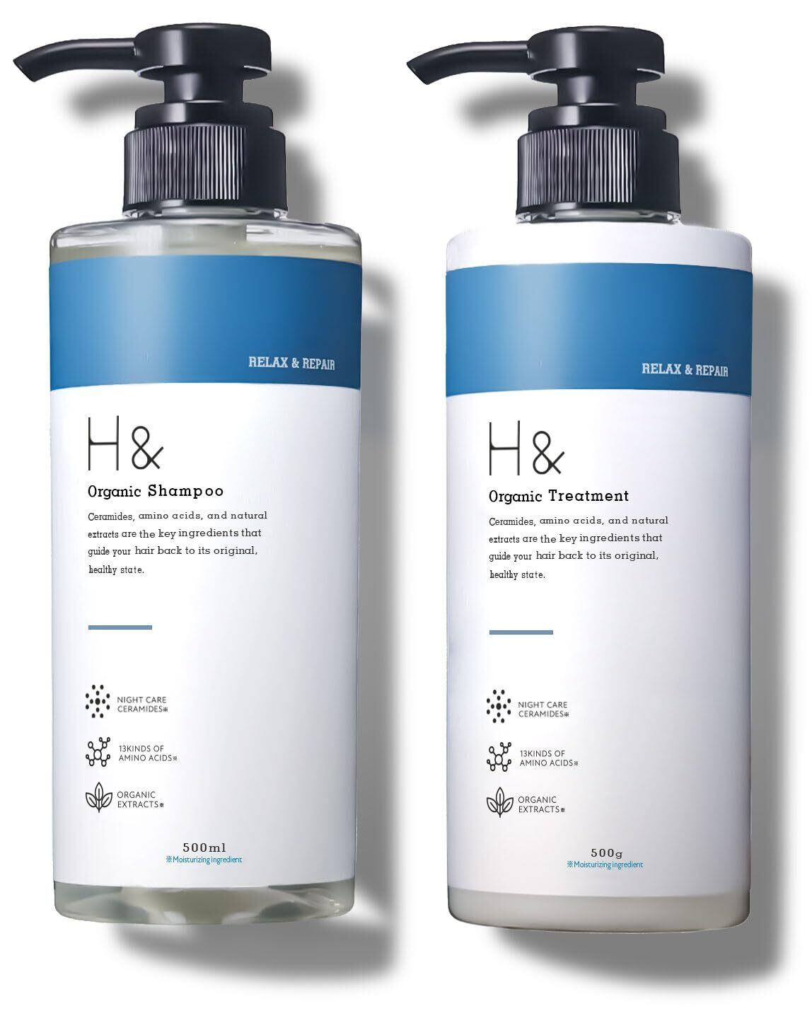 H&アッシュアンド シャンプー トリートメント 美容室専売品 アミノ酸シャンプー【ダメージ集中補修xシャンプートリートメントセット】 (ボトルセット)