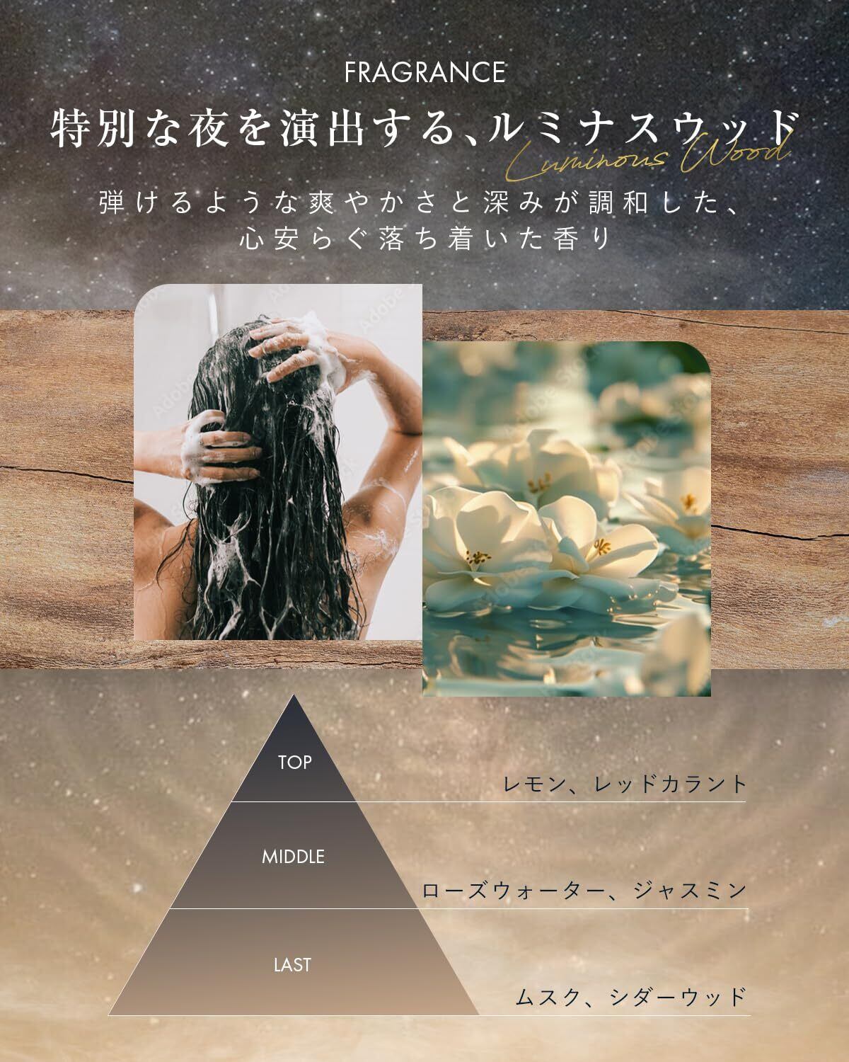 【指通り34%UP 艶は32%UP!】シャンプー、トリートメントを使用前後で検査機関にて試験を実施したところ、指通りもツヤも大幅にUPすることを証明しております。※消費科学研究所調べ