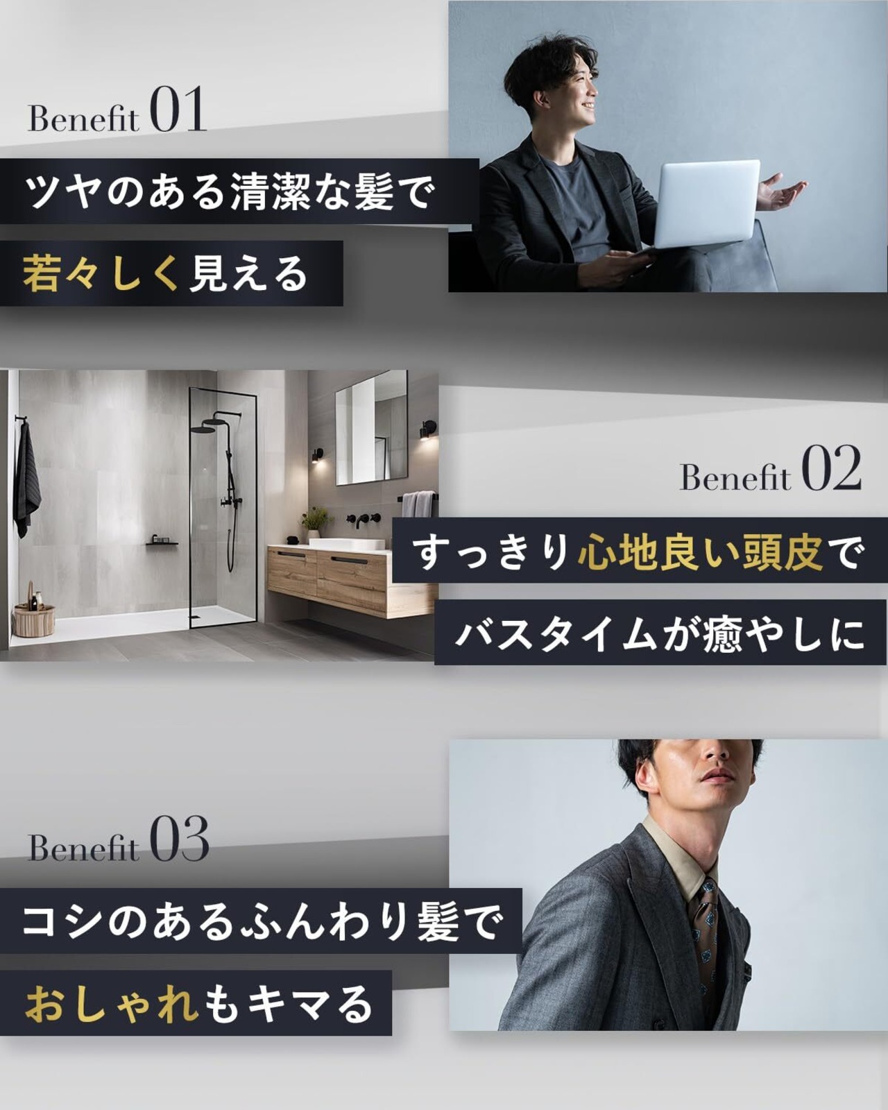 【男性の代表的な髪悩み解決に】男性の頭髪・頭皮のお悩み「フケ」や「痒み」を抑え清潔な頭皮環境に導きます。毎日の入浴時のシャンプーで毛髪を育む頭皮に潤いを与えます。