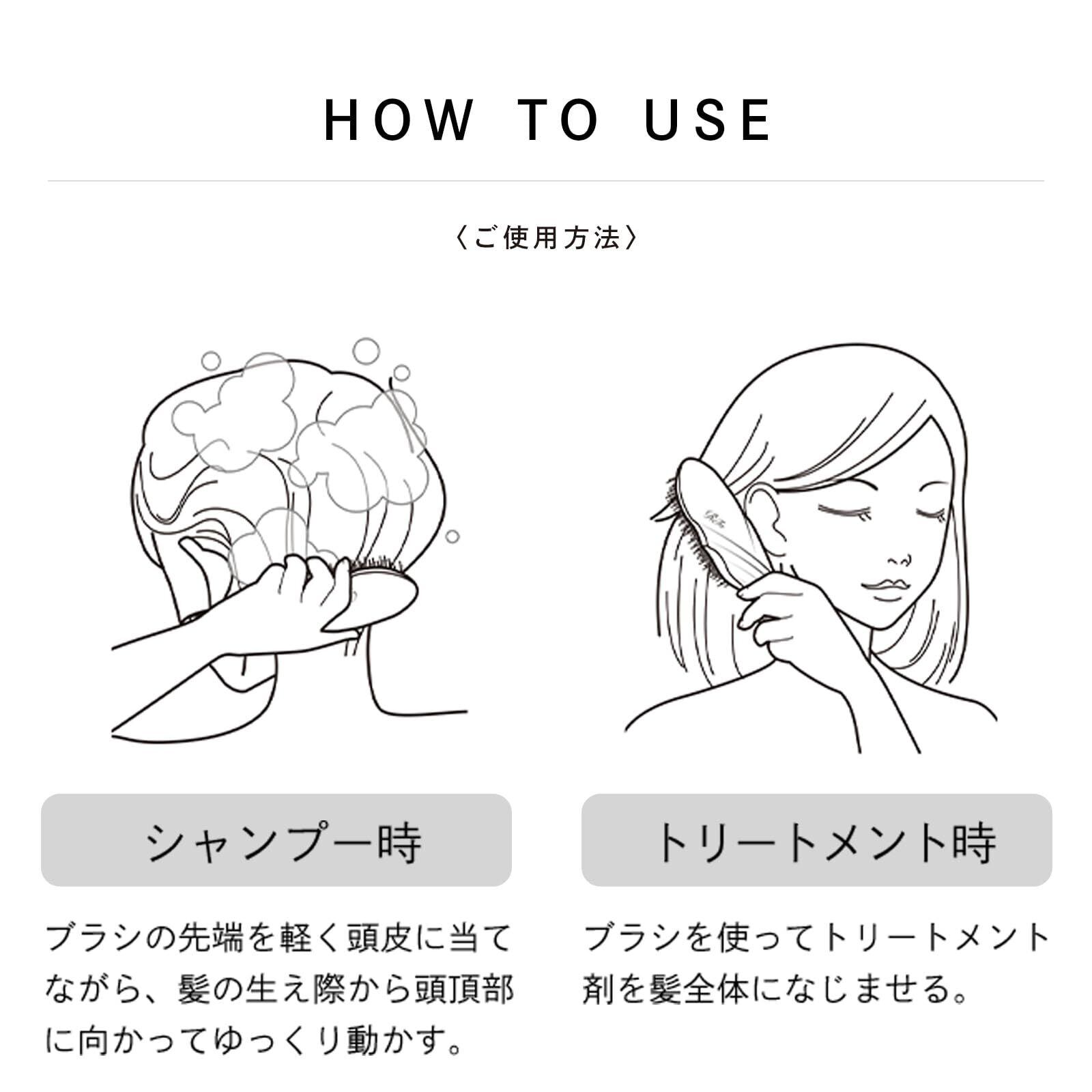 【頭皮までピンがはいり込む グラデーションタッチ毛】2つのかたさのピンが段階的に触れることで、届きにくい頭皮にまではいり込みます。