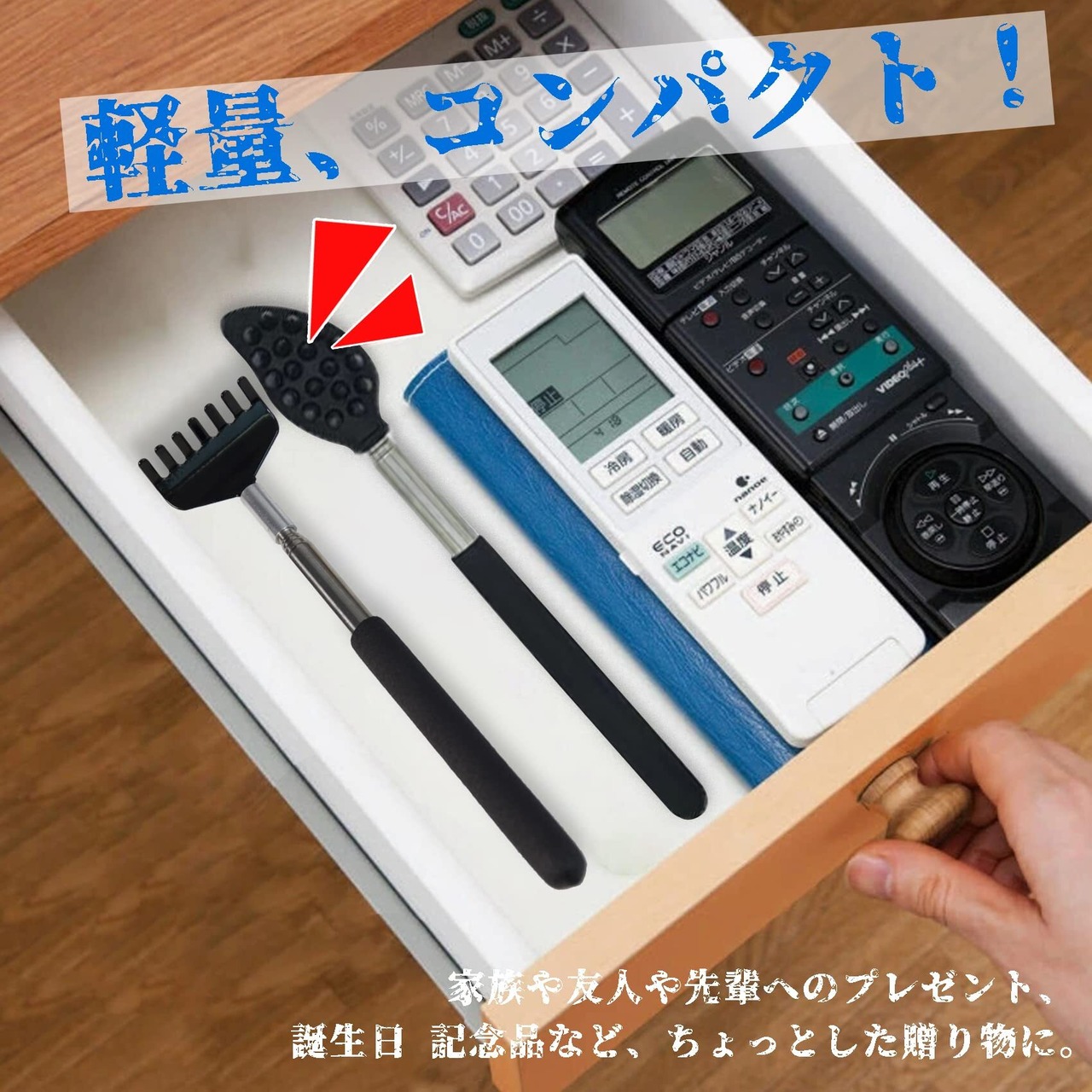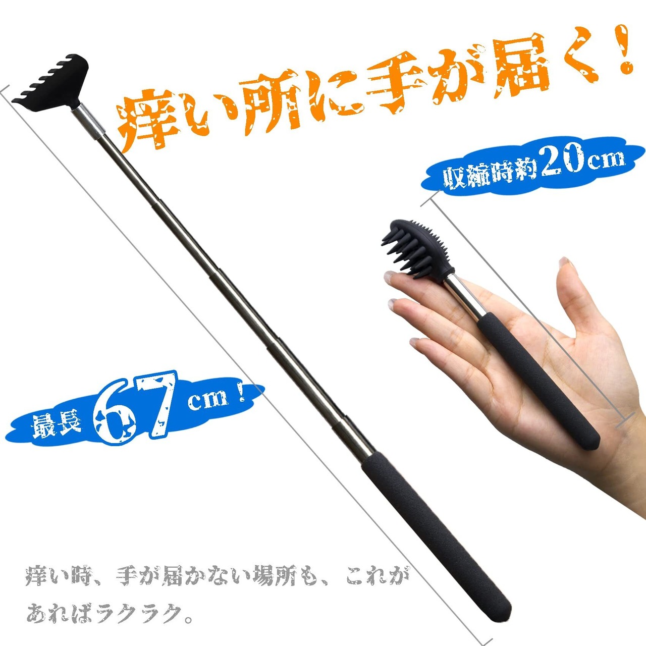 【軽量、コンパクト!伸縮可能!】重さわずか46グラム。[収縮時]約20cm [伸長時]約67cm [パッケージ内容] 2本 伸びる孫の手。 収納時はコンパクトに収納でき、持ち運びにも便利です。ちょっとした実用的な楽しいプレゼントとして最適です。家族や友人や先輩へのプレゼント、 誕生日 記念品など、ちょっとした贈り物に。くじの景品に。母の日、父の日、敬老の日、などに、大好きなお父さん、お母さん、おじいちゃん、おばあちゃん、にプレゼントするのもおすすめです。