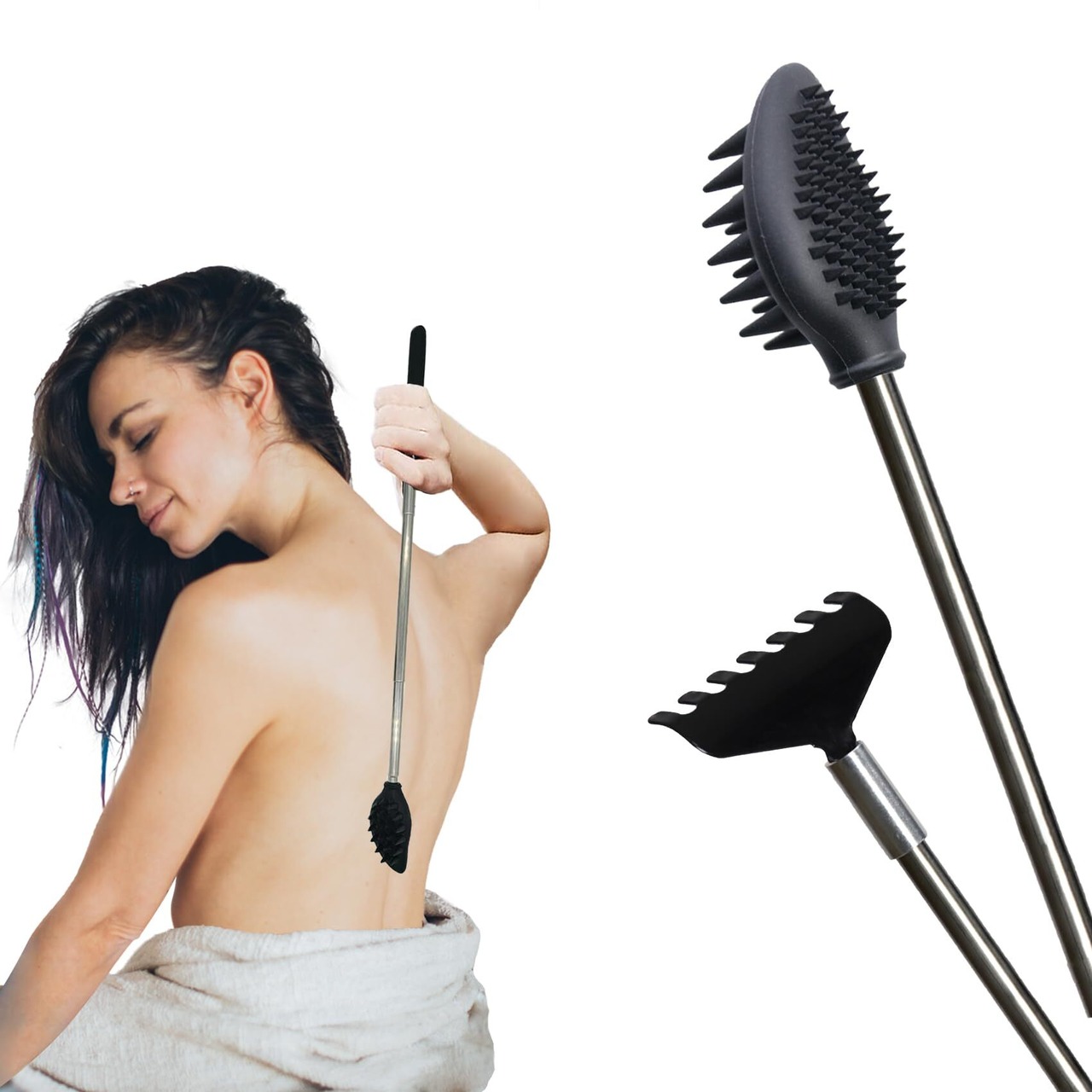 【肌を傷つけない!さっさとかゆり止め!】YOAYAO 孫の手の秘密は、特殊なヘッドにあります。 ひとつは特製のソフトシリコンブラシヘッド、もうひとつのティクラーは丈夫なステンレスブラシヘッドです。 この2個セットで、一度に2通りのかゆみ解消法を体験できます!複数のスパイク設計により、かゆみを和らげても問題ありません。小さな力でも十分な刺激を与え、大きな力でも皮膚を痛めません。肌を痛めない背中ケアに最適なアイテムです!