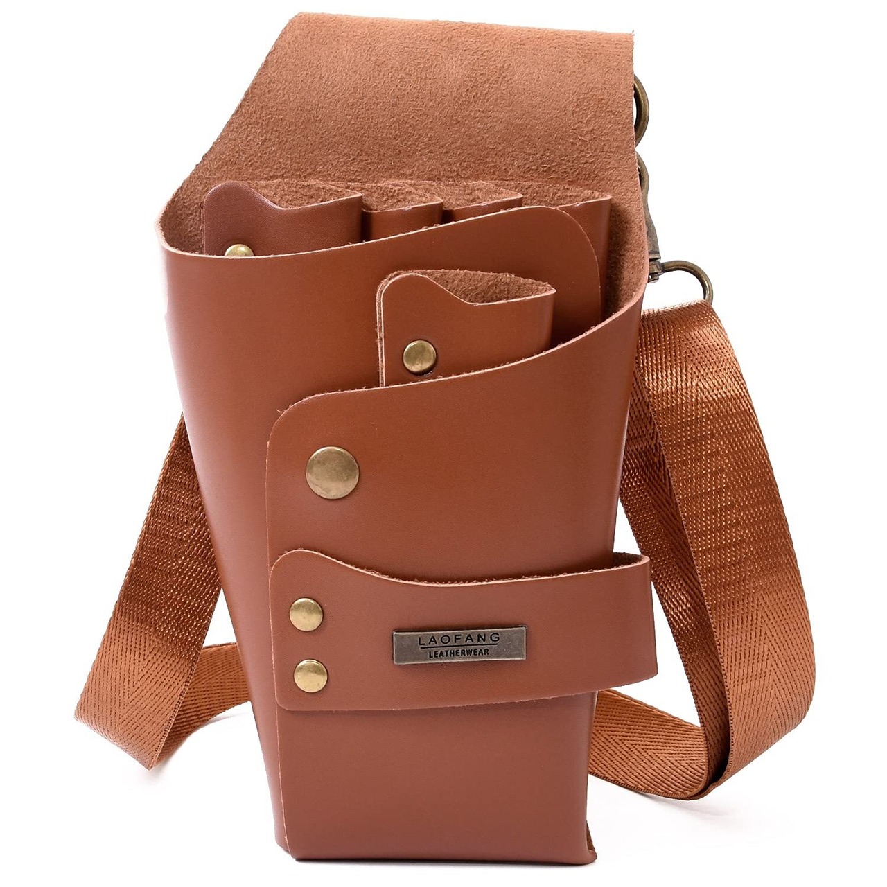 シザー ケース (5色からお選びいただけます) シザーケース 美容師 【 コーム ダッカールピン などの収納にも PUレザー ハサミケース 【SOY’S F】 (ブラウン)