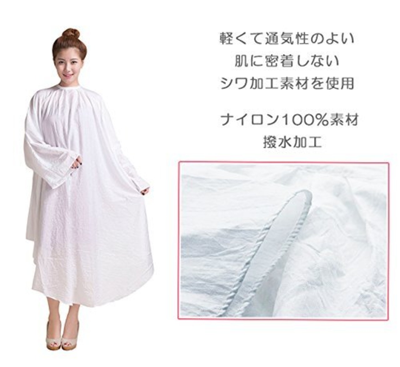 [HANA] 散髪用ケープ カットクロス 袖付しわ加工 ケープ 散髪 マント 美容室 理容室 大きい椅子対応 マジックテープ 美容院 プロ用 大人 子供 ヘアサロン セルフカット セルフカラー(ホワイト)