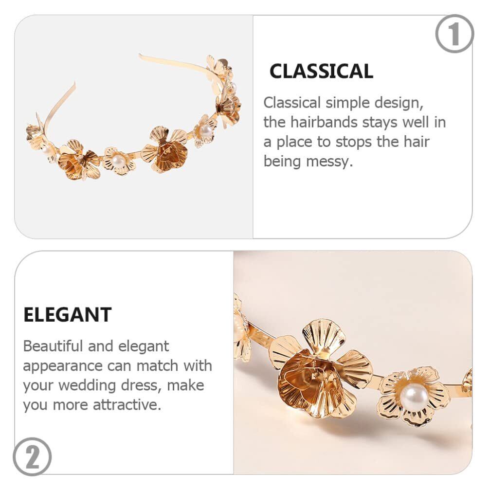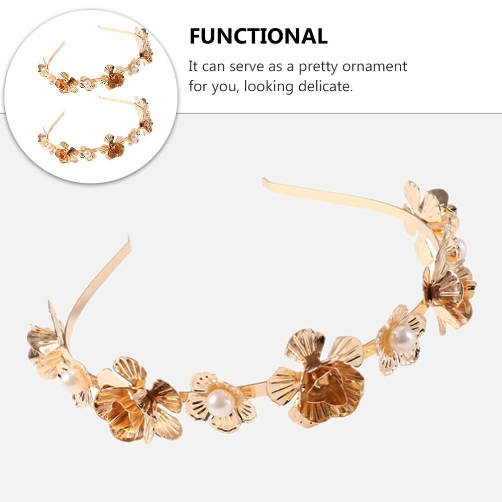 結晶の結婚式のヘッドバンドゴールドhairand:ヴィンテージ花真珠カチューシャブライダルヘアジュエリーラインストーンヘアフープ女性の女の子のヘアアクセサリー2PCS