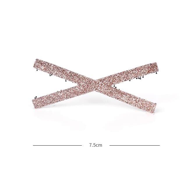 KAMIPITA (お得な2個セット) マジックテープ仕様のかわいい髪留め、ヘアピン,シャンパン,ヘアクリップ ミニ,グリッター、キラキラ、髪留め クリップ、ヘアゴム 子供、キラキラ ヘアアクセ、前髪クリップ、あとがつかない、跡がつかない、可愛い(クロス シャンパン2個)